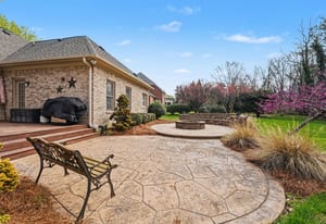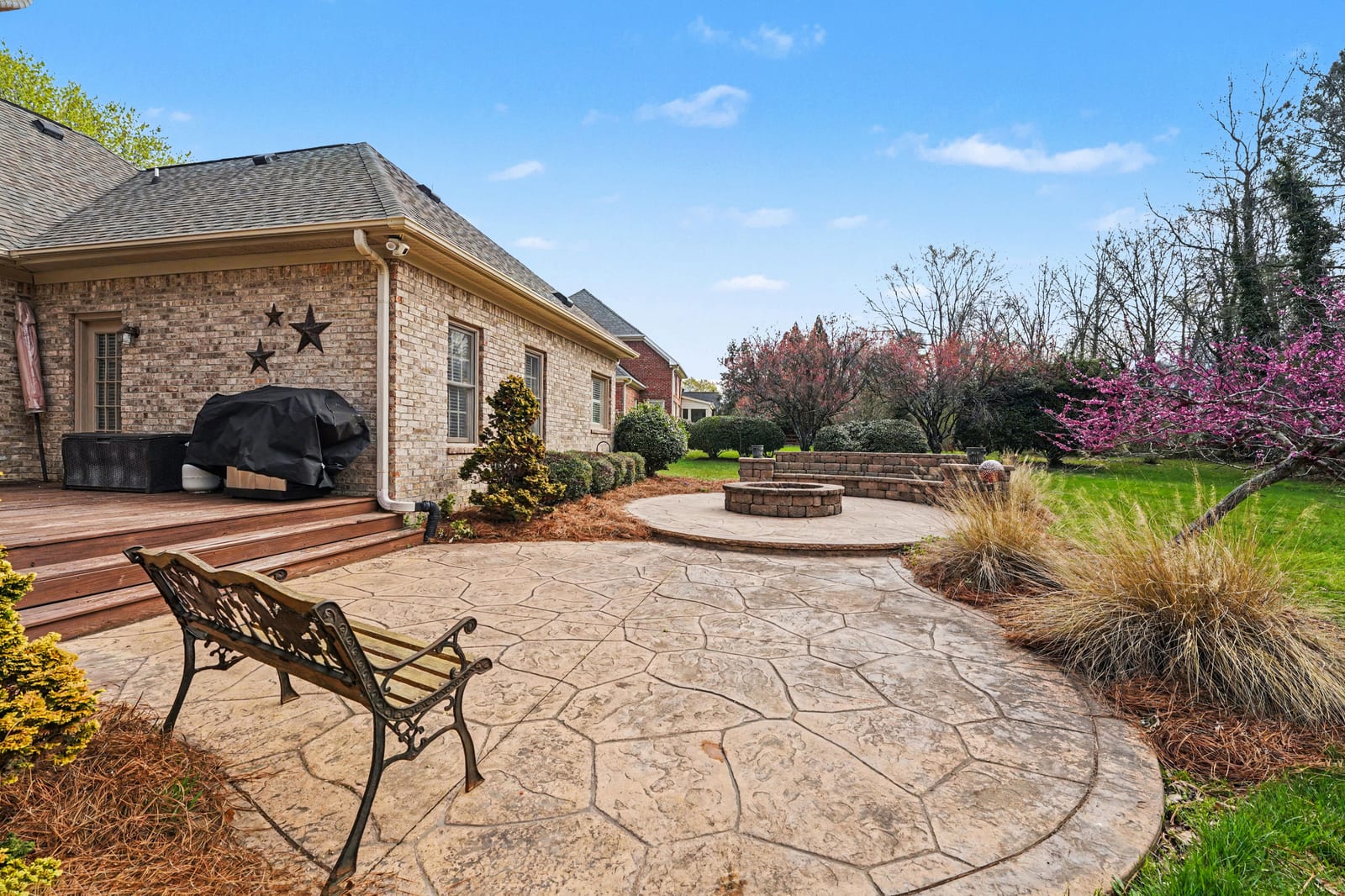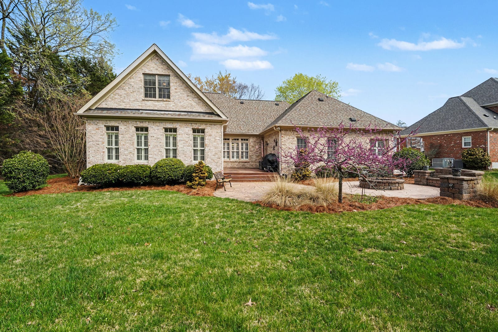 Outdoor living can be enjoyed on the stone patio with a built-in fire pit, providing a comfortable space for gathering, entertaining, or relaxing. Also, the property backs to an HOA-owned and maintained wooded lot, providing additional privacy.