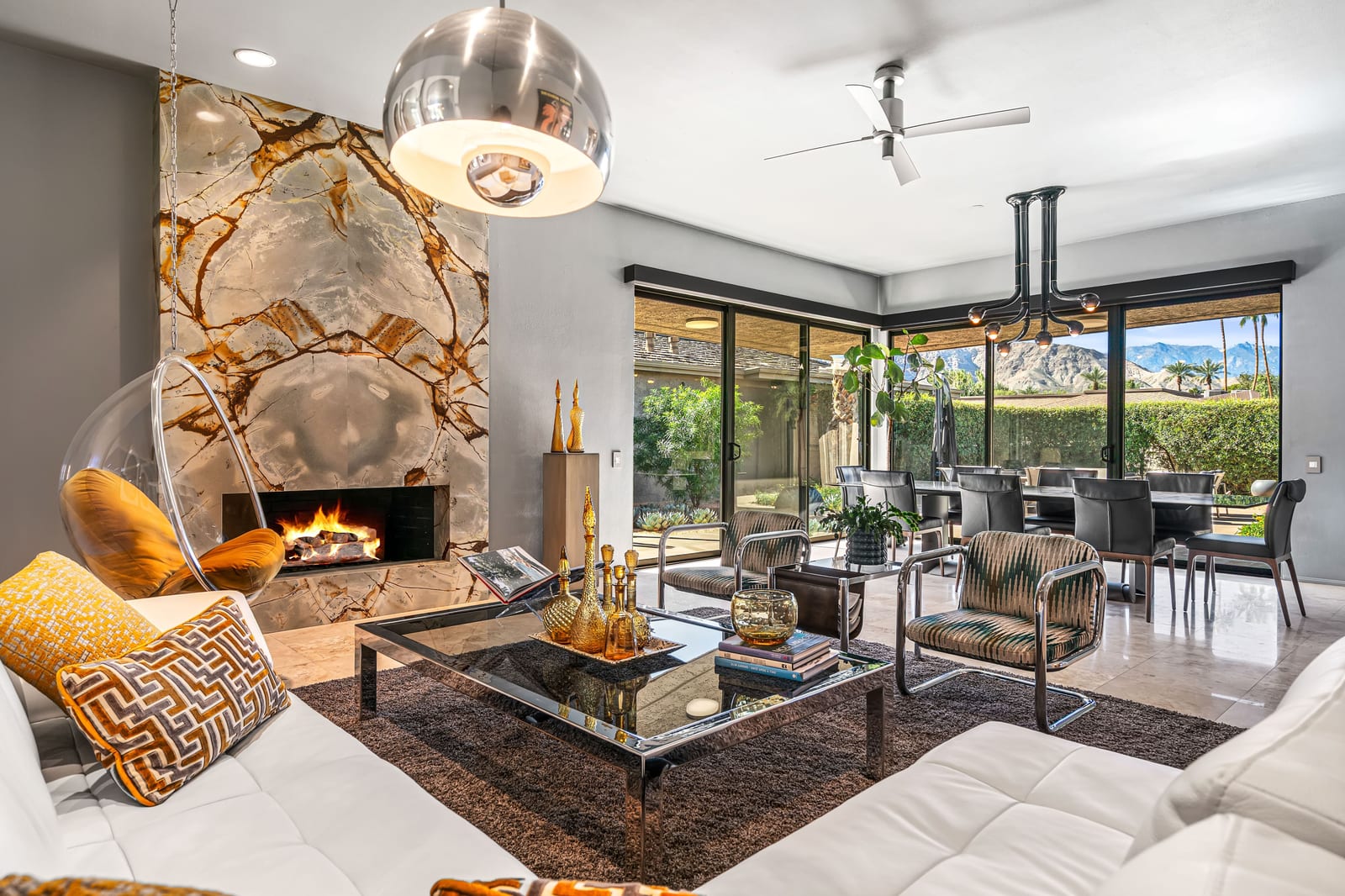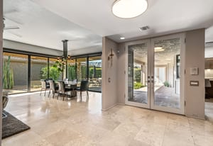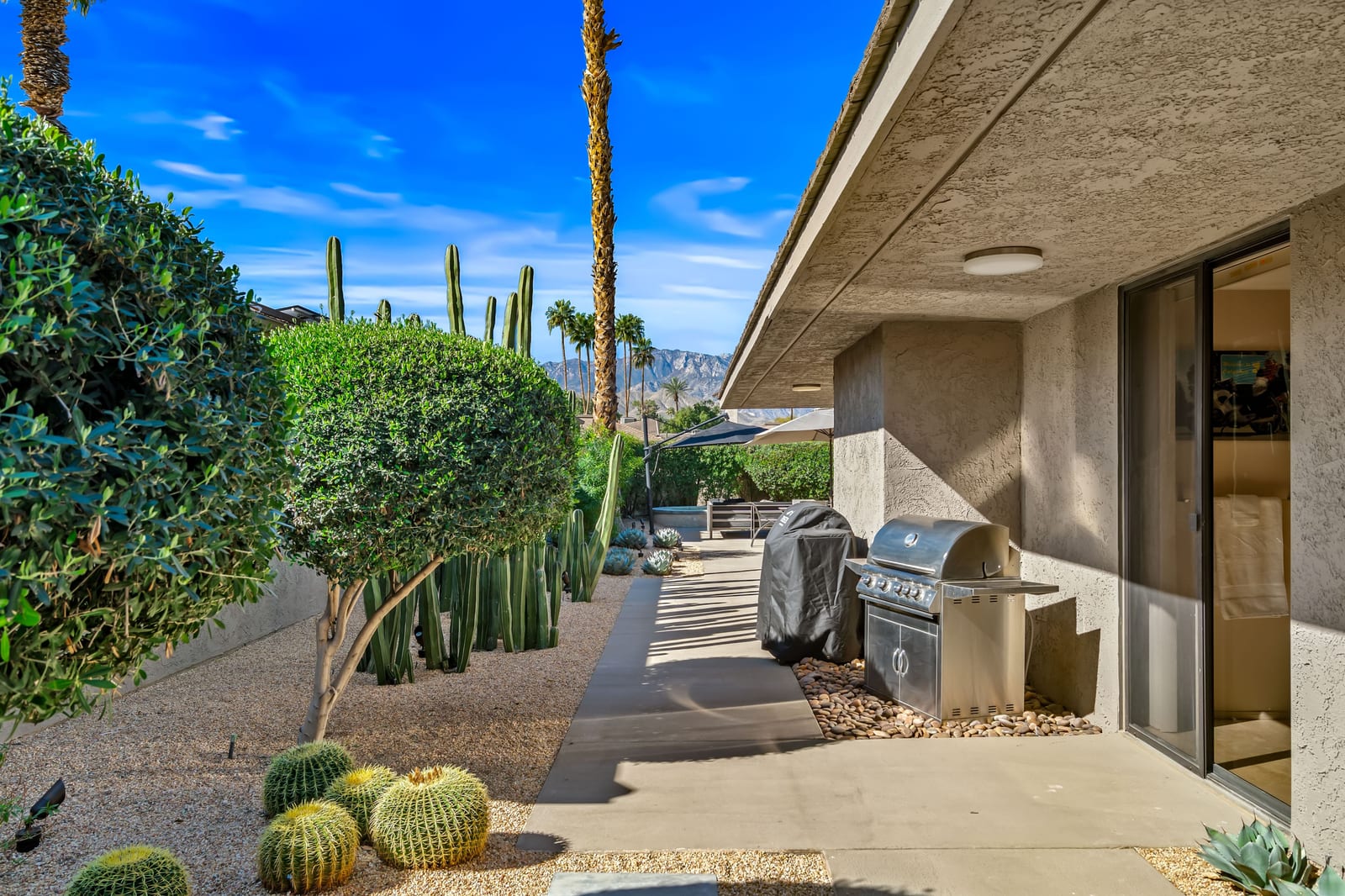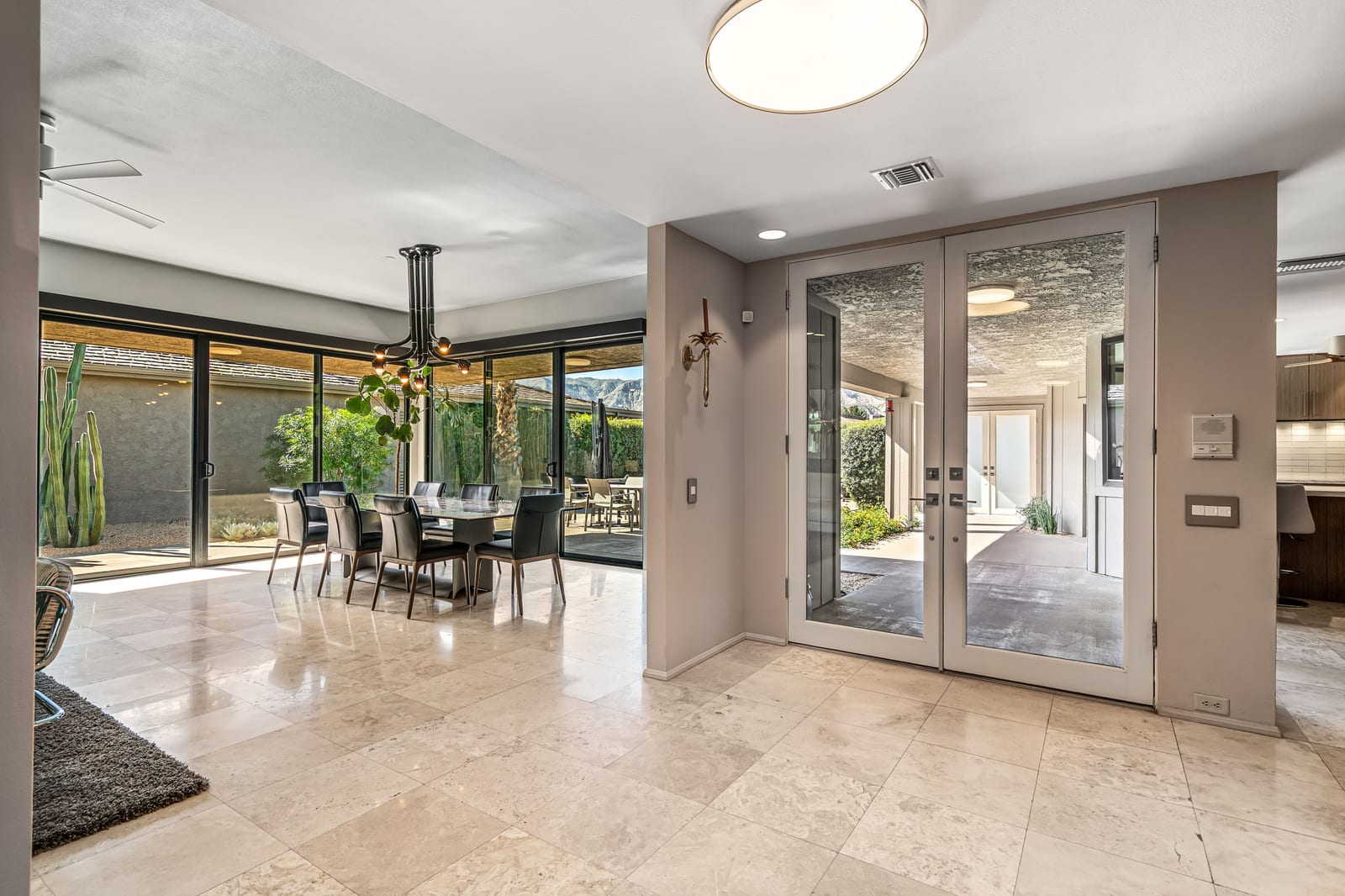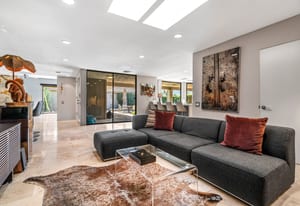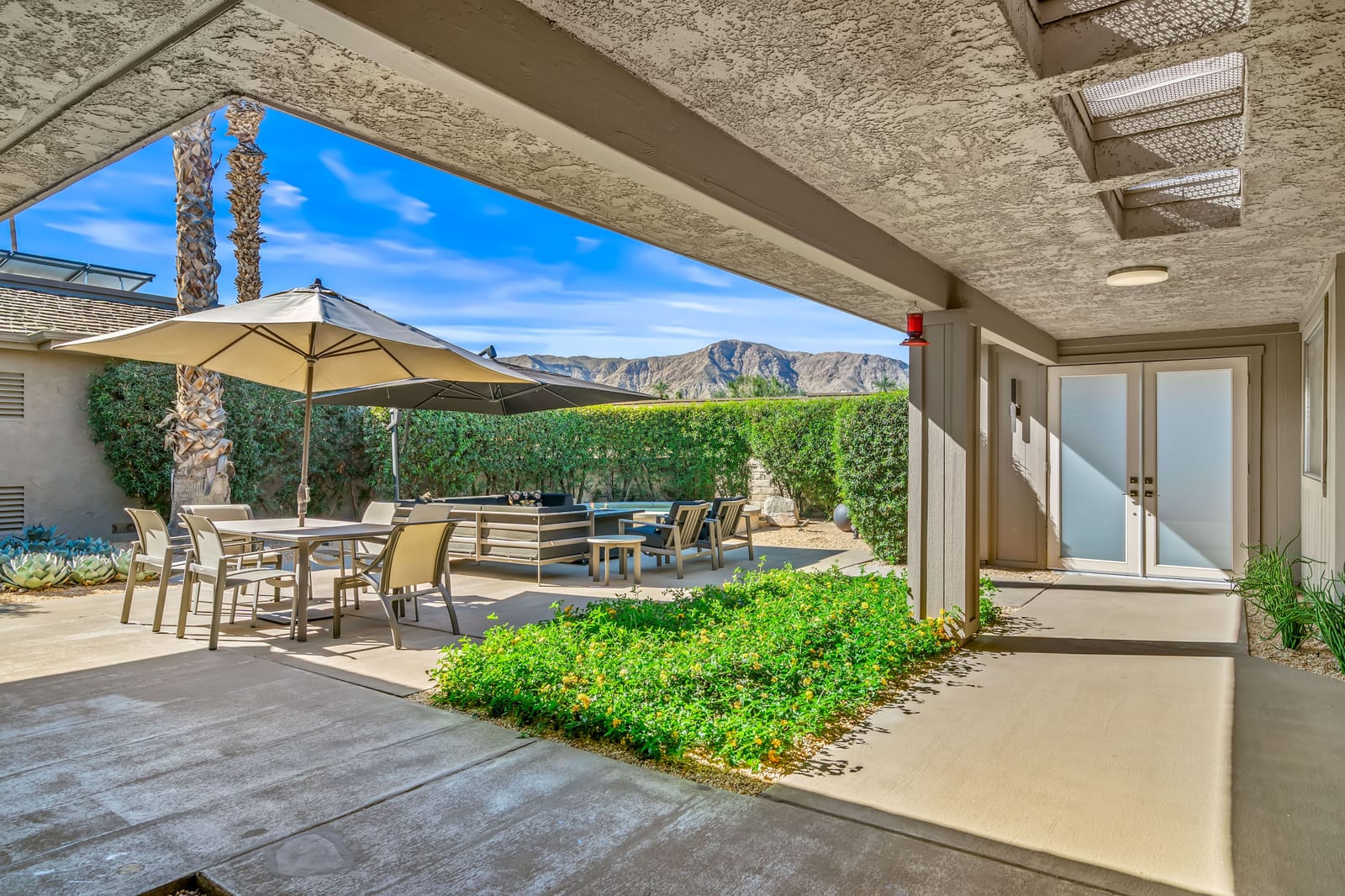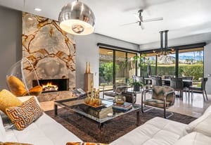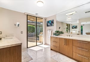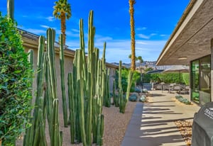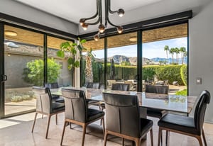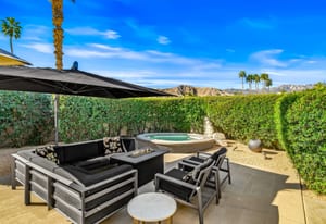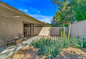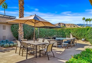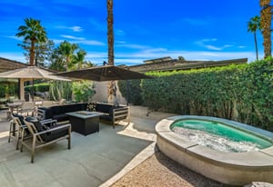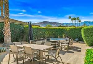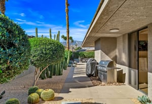 Dartmouth Drive is known for stand alone homes with St Andrews floor plans and large lots. This updated beauty gives you the luxury features you desire and complete privacy. Purchasing this furnished home gives you the opportunity to move in and start enjoying life in the sun instead of spending your time in furniture stores. Full Miele kitchen with 2-dishwashers, wall mounted espresso machine, induction cooktop, convection oven and steam oven. Custom bar for entertaining and open floor plan. With custom stone, ice maker, insta-hot faucet and lux barstools. Open plan gives light and sight lines of mountain views and Sunnylands-style desert landscaping. Leased solar, skylights and on-demand hot water all add to energy efficiency. Along with the 3-ensuite bedrooms, you'll see a lovely office space with garden featuring a fountain. Design continuity throughout. High quality, thoughtful materials. Statement fireplace and Johnathan Entler dining chandelier over 10' table invite guests to enjoy the views while the sunsets. 2-car attached garage, golf cart garage and built-in storage. A mix of mid century, 70s glam, and modern furniture add to the fun spirit of desert life. Everyone loves The Springs Country Club. And it's perfect timing for you to start your fun here. We just completed a total renovation of our gorgeous Desmond Muirhead golf course. Pickleball courts have just been resurfaced & the club is more fun than ever.