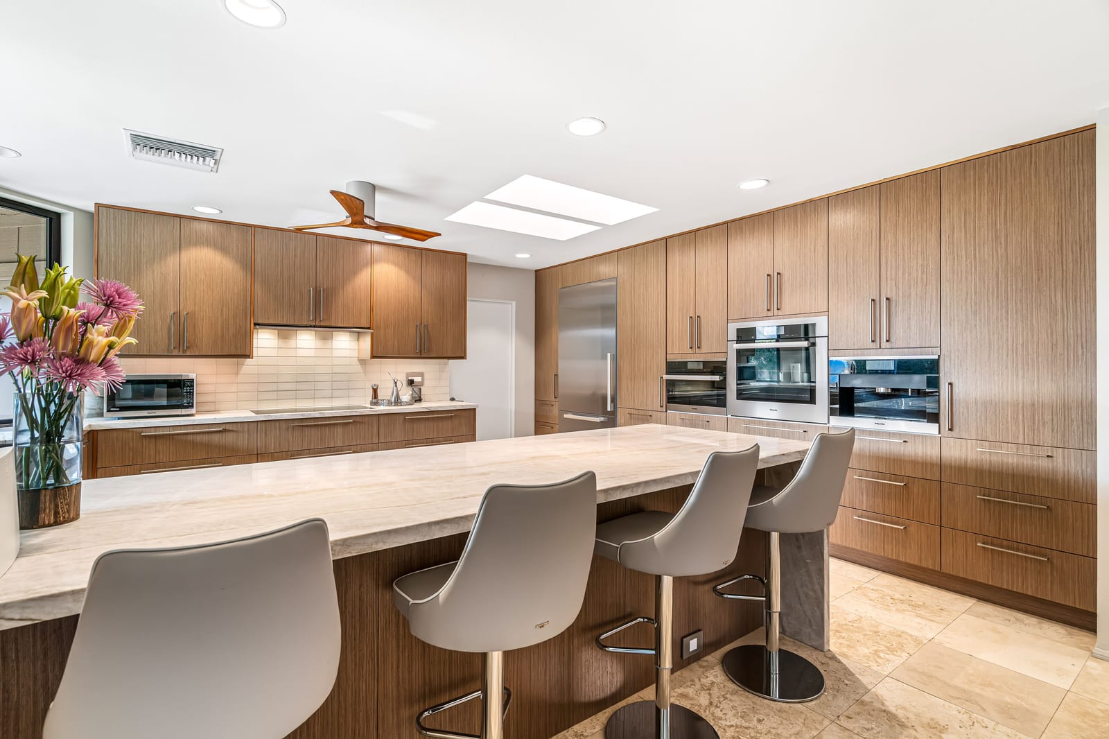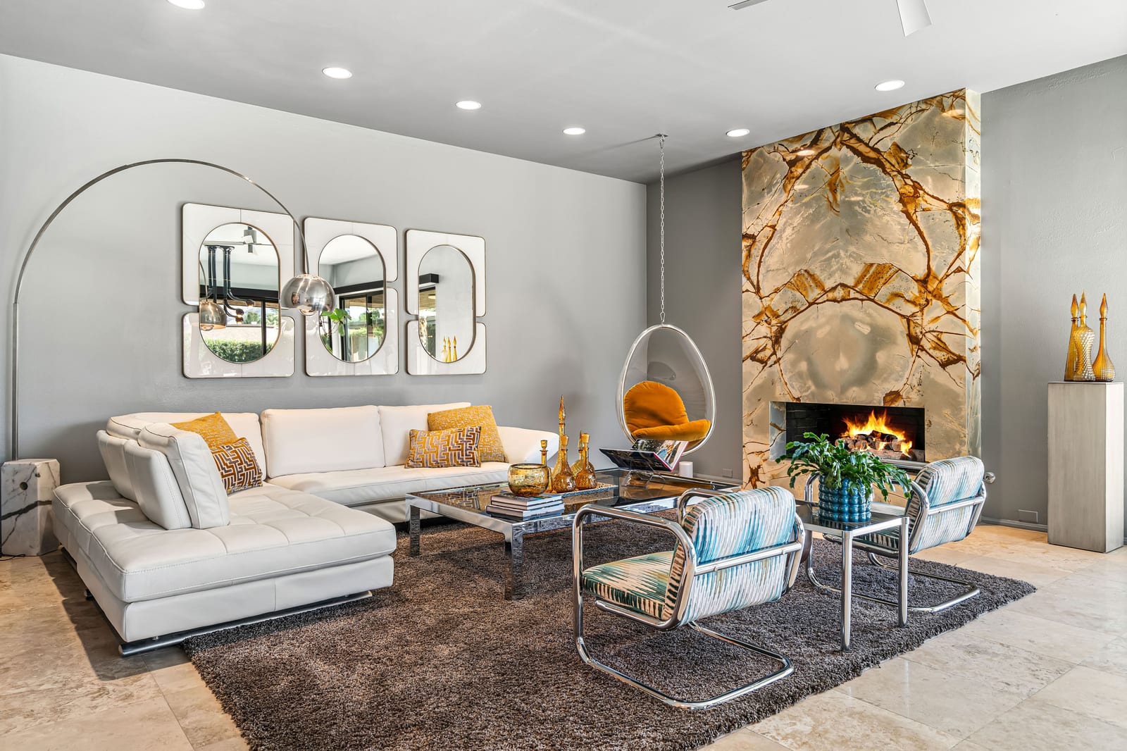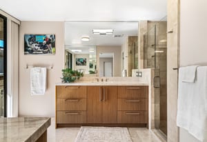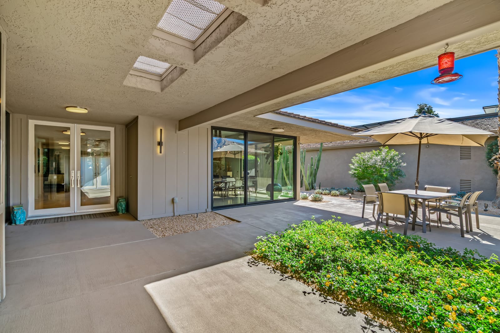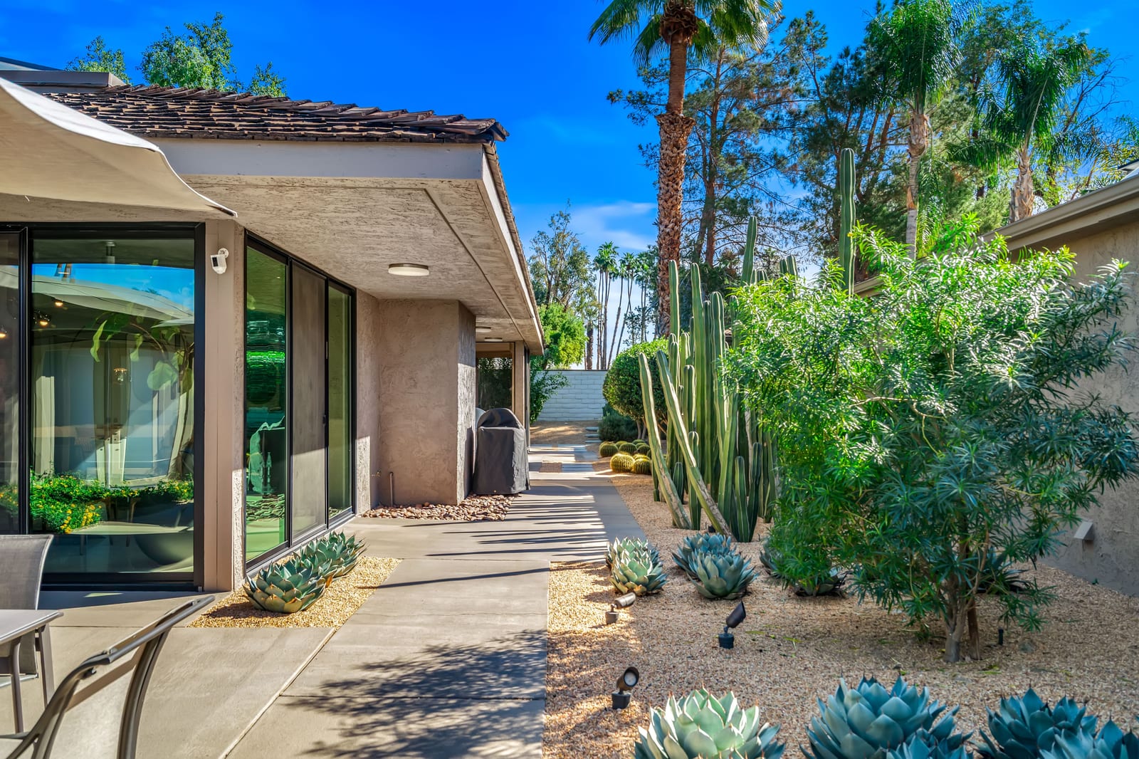 Dartmouth Drive is known for stand alone homes with St Andrews floor plans and large lots. This updated beauty gives you the luxury features you desire and complete privacy. Purchasing this furnished home gives you the opportunity to move in and start enjoying life in the sun instead of spending your time in furniture stores. Full Miele kitchen with 2-dishwashers, wall mounted espresso machine, induction cooktop, convection oven and steam oven. Custom bar for entertaining and open floor plan. With custom stone, ice maker, insta-hot faucet and lux barstools. Open plan gives light and sight lines of mountain views and Sunnylands-style desert landscaping. Leased solar, skylights and on-demand hot water all add to energy efficiency. Along with the 3-ensuite bedrooms, you'll see a lovely office space with garden featuring a fountain. Design continuity throughout. High quality, thoughtful materials. Statement fireplace and Johnathan Entler dining chandelier over 10' table invite guests to enjoy the views while the sunsets. 2-car attached garage, golf cart garage and built-in storage. A mix of mid century, 70s glam, and modern furniture add to the fun spirit of desert life. Everyone loves The Springs Country Club. And it's perfect timing for you to start your fun here. We just completed a total renovation of our gorgeous Desmond Muirhead golf course. Pickleball courts have just been resurfaced & the club is more fun than ever.