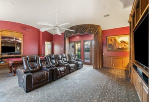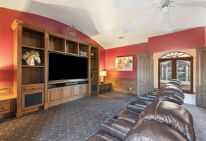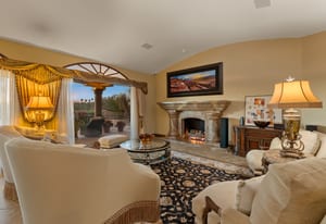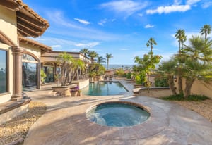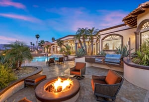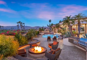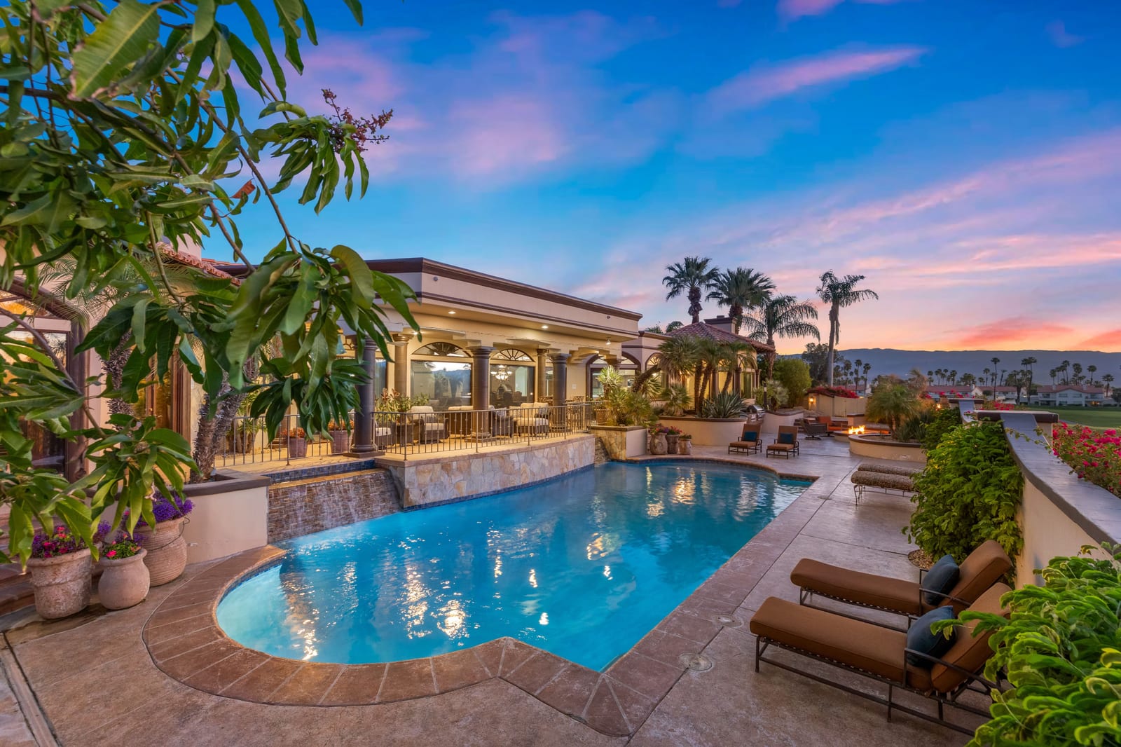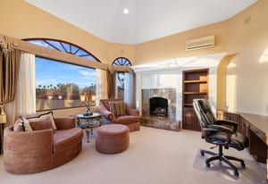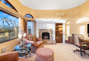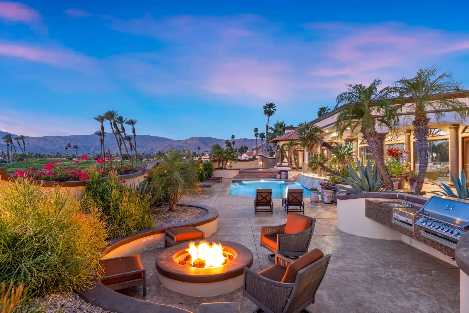 Outdoor living is equally impressive. The home features a large multi-level pool and spa retreat designed for entertaining, complete with an outdoor fireplace, multiple lounge areas, and exceptional privacy. Surrounded by sweeping mountain vistas and lush golf course greens, this outdoor environment offers an ideal setting for both intimate relaxation and memorable gatherings.