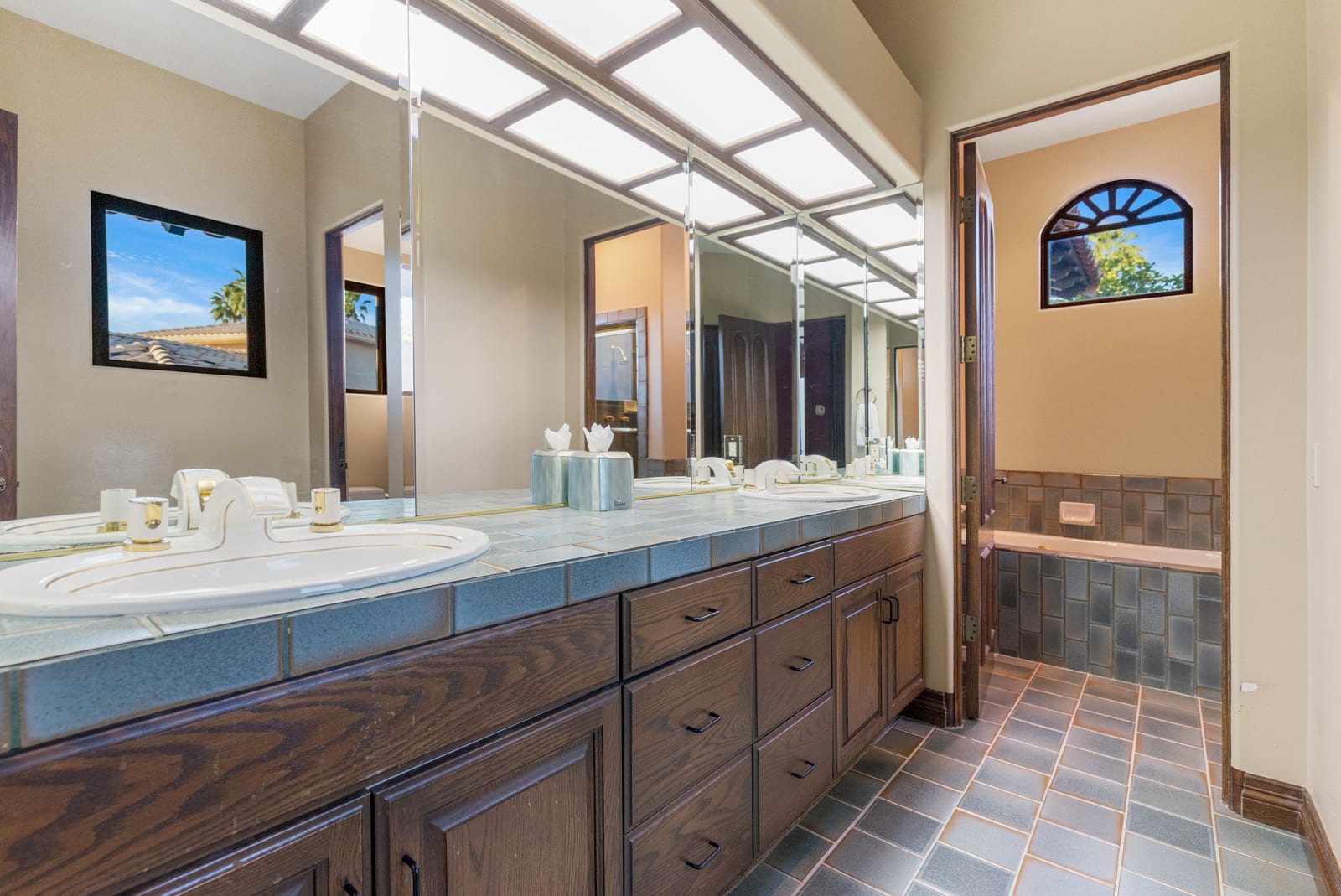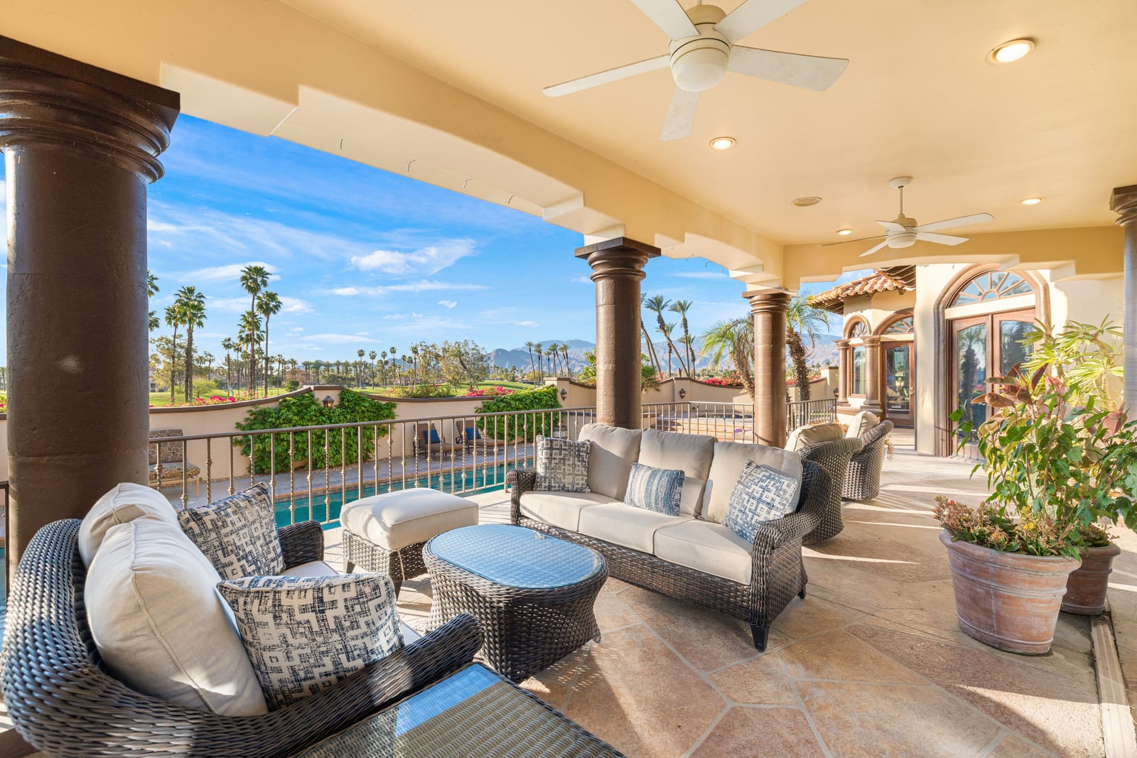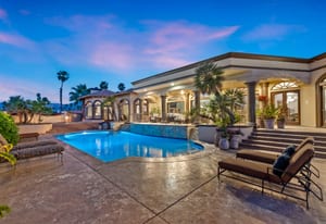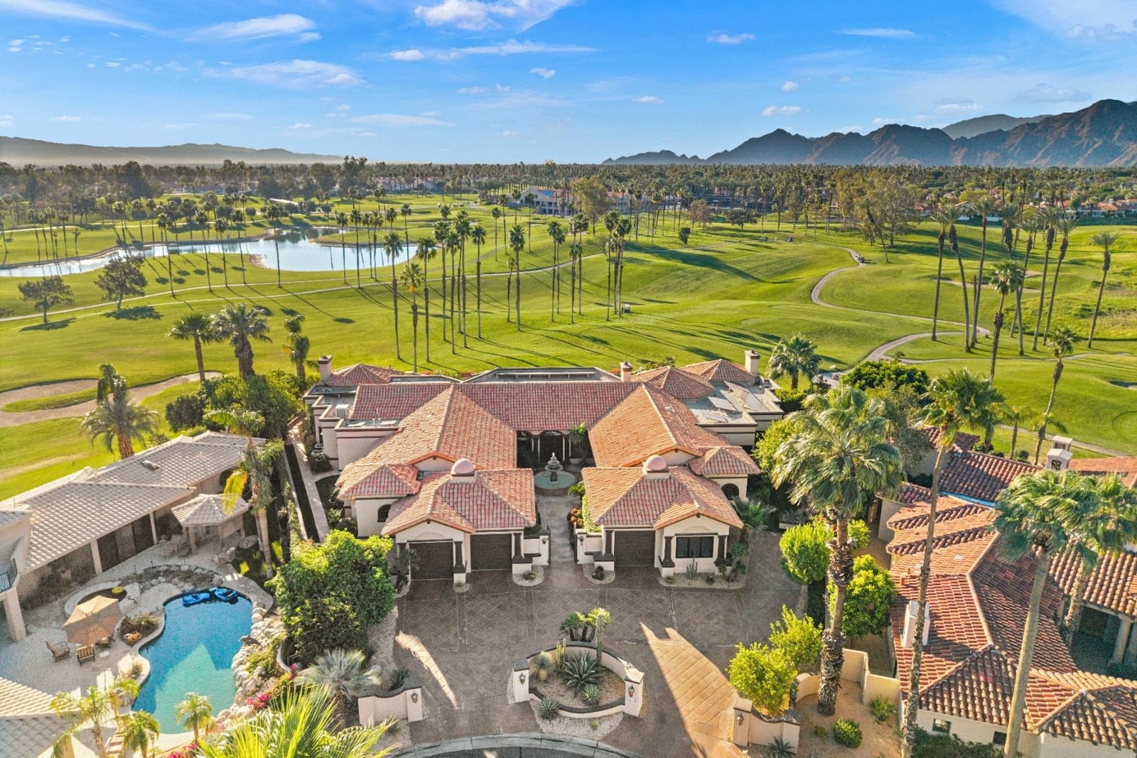 Offering breathtaking panoramic mountain and golf course views, this remarkable 7,185 square foot custom estate is the most distinctive residence in Desert Falls Estates. Originally constructed by the developer of Desert Falls Country Club as his personal residence, the home was thoughtfully designed to capture the beauty of the surrounding views while offering exceptional scale, privacy, and luxury.