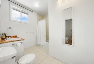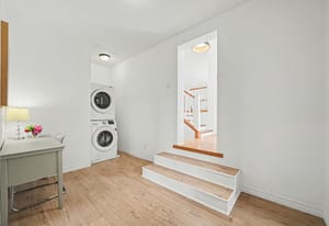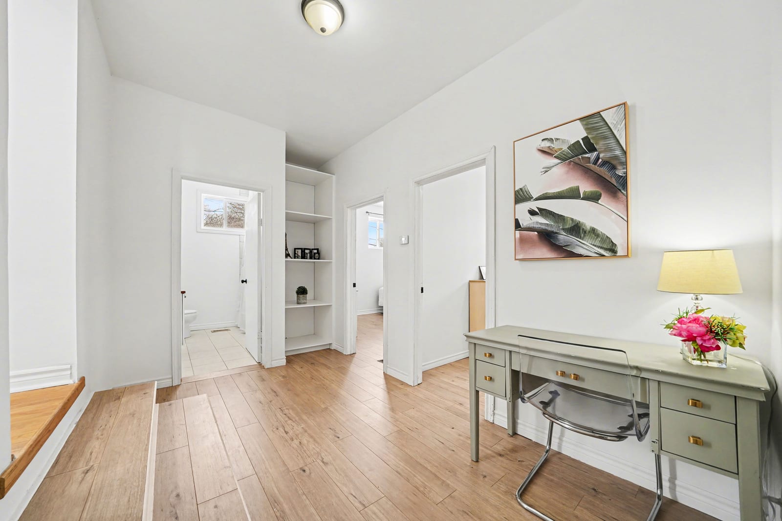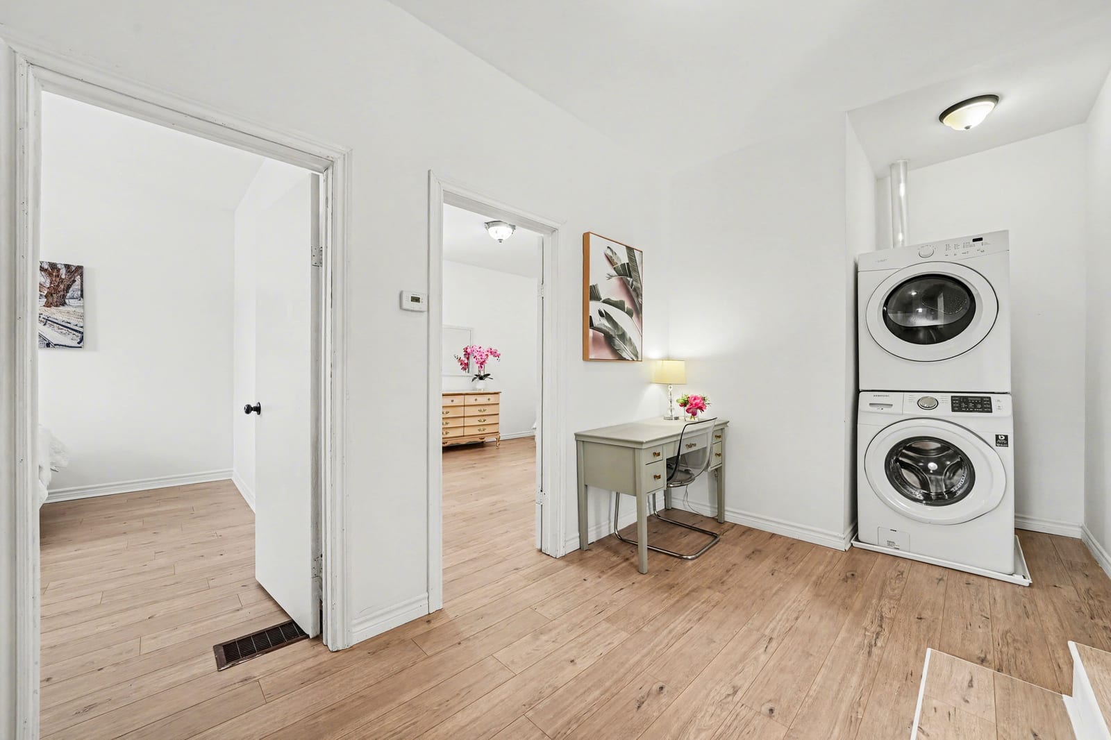The classic side-split layout offers both flow and functionality. Just a few steps down from the main living area, you’ll find a versatile flex space—ideal for a home office or study—along with a convenient laundry area with stacked washer and dryer. This level also includes 2 generously sized bedrooms boasting high ceilings - the spacious primary suite flows to a 4-piece ensuite, while the second bedroom & 4-piece bathroom are perfect for family or guests.