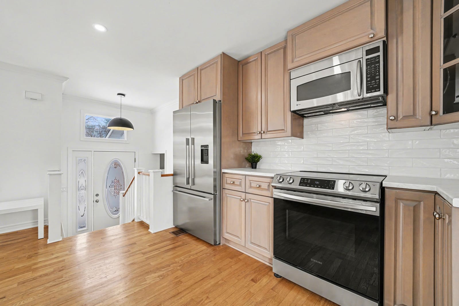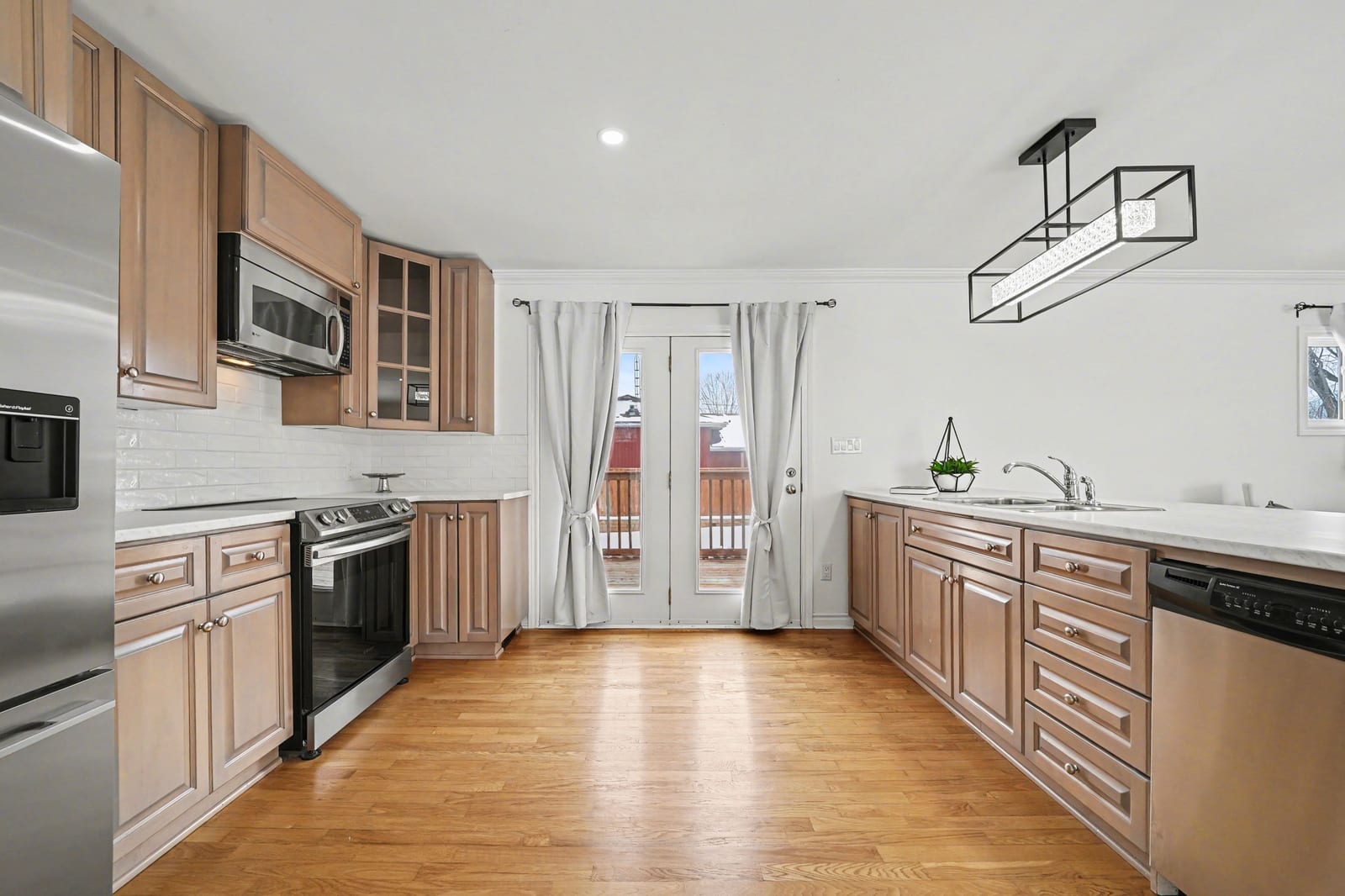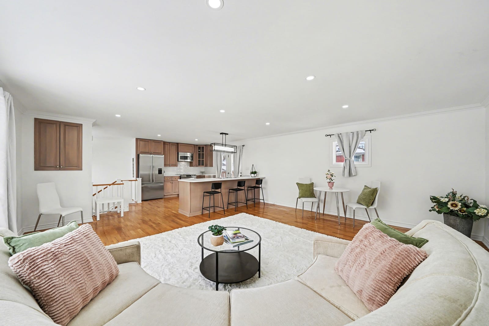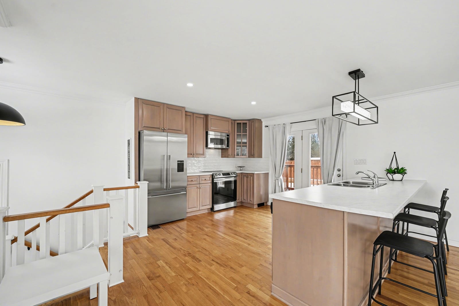At the heart of the home is a gorgeous new kitchen, featuring an expansive breakfast bar open to light-filled living/dining areas, making it ideal for effortless entertaining and everyday living. Convenient garden doors lead to a spacious new deck, perfect for BBQs, outdoor dining, and relaxing with family and friends.