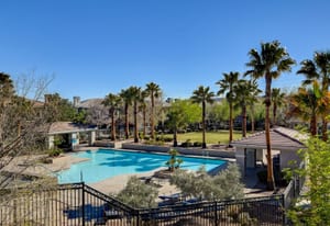 Enjoy an unbeatable location just moments from shopping, dining, & entertainment at Downtown Summerlin, with Gardens Park just around the corner. This well-appointed condo features ceiling fans in all bedrooms & the living room for year-round comfort. The spacious primary suite offers a walk-in closet with built-in storage, creating both functionality & style. The kitchen is designed for everyday living & entertaining, complete with GE appliances, a convenient bar-top eating area, & a cozy breakfast nook with direct access to the private balcony. The open layout flows seamlessly into the inviting living room, highlighted by a charming fireplace—perfect for relaxing evenings at home. Additional upgrades include plantation shutters throughout, adding both elegance & privacy. Residents enjoy access to beautifully maintained walking paths & a sparkling community pool, all within a peaceful gated setting. Experience comfortable living in one of Summerlin’s most desirable locations.