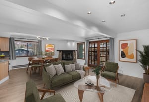 The floor plan accommodates guests comfortably, with three spacious bedrooms, ample storage including a large pantry and a locked storage closet, in-unit laundry, and a one-car garage. A nearby bus stop offers direct access to downtown Crested Butte without the need for a vehicle.
