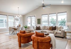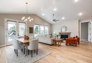 This beautifully crafted custom rambler is located along a picturesque lane in Salt Lake City's Sugarhouse Place subdivision, offering a thoughtful blend of modern design, refined finishes and comfortable living spaces. Carefully designed with both style and everyday functionality in mind, the residence features a thoughtfully-considered layout that seamlessly connects the kitchen, dining and family areas under soaring vaulted ceilings. The main living spaces are filled with natural light and designed for effortless living and entertaining. A semi formal dining area flows naturally into the gourmet kitchen and inviting family room, creating a welcoming central gathering space. The kitchen is beautifully appointed with custom cabinetry, quartz countertops, a spacious island with seating for four, a gas range with hood and a built-in pantry. The adjacent family room offers generous space for unwinding, highlighted by a custom-built mantel and gas fireplace. Sliding door access to the back patio extends the living space outdoors, ideal for entertaining or enjoying quiet evenings at home.