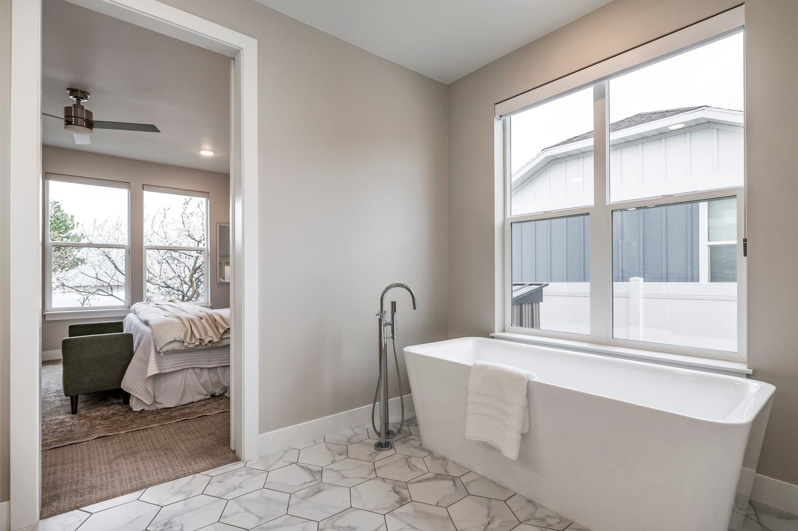 The main level features two bedrooms, including a well appointed primary suite complete with its own gas fireplace, a dual vanity, soaking tub and Euro glass shower. A secondary ensuite bedroom provides additional comfort and privacy for guests or family members. A bank of custom storage lockers, a laundry room with sink and a convenient powder bath complete the main level. The lower level boasts impressive nine-foot ceilings and a spacious secondary family room anchored by another gas fireplace. Three additional ensuite bedrooms provide flexibility for visiting guests, while a generous storage room adds practical convenience. Ideally located near Sugar House Park with quick access to major freeway corridors, this home offers peaceful neighborhood living and convenient proximity to the best dining, shopping and cultural amenities that define Salt Lake City.