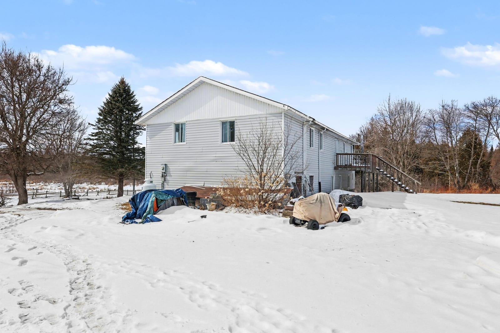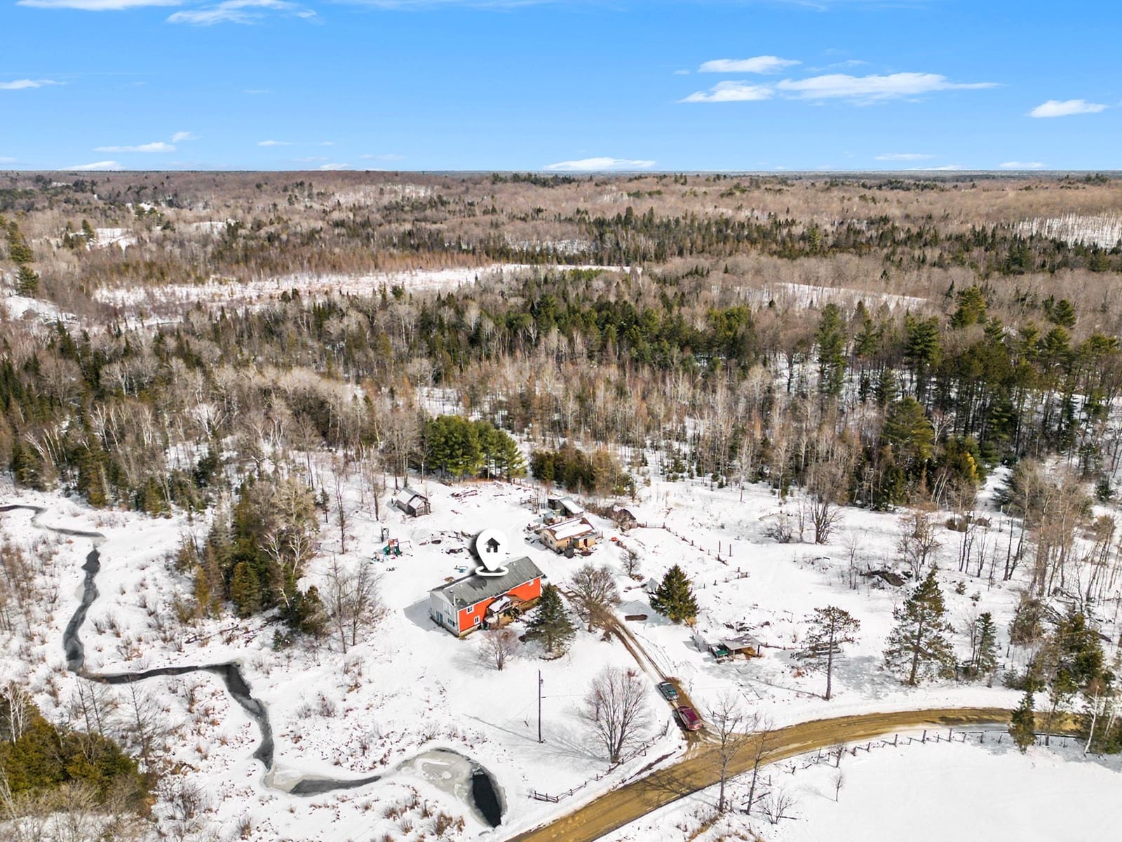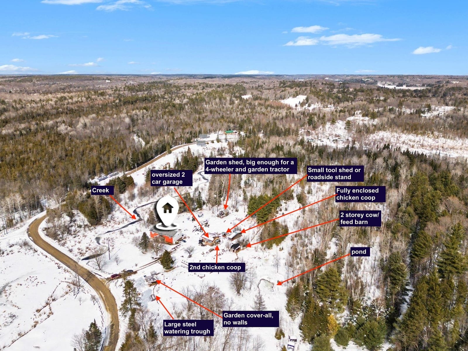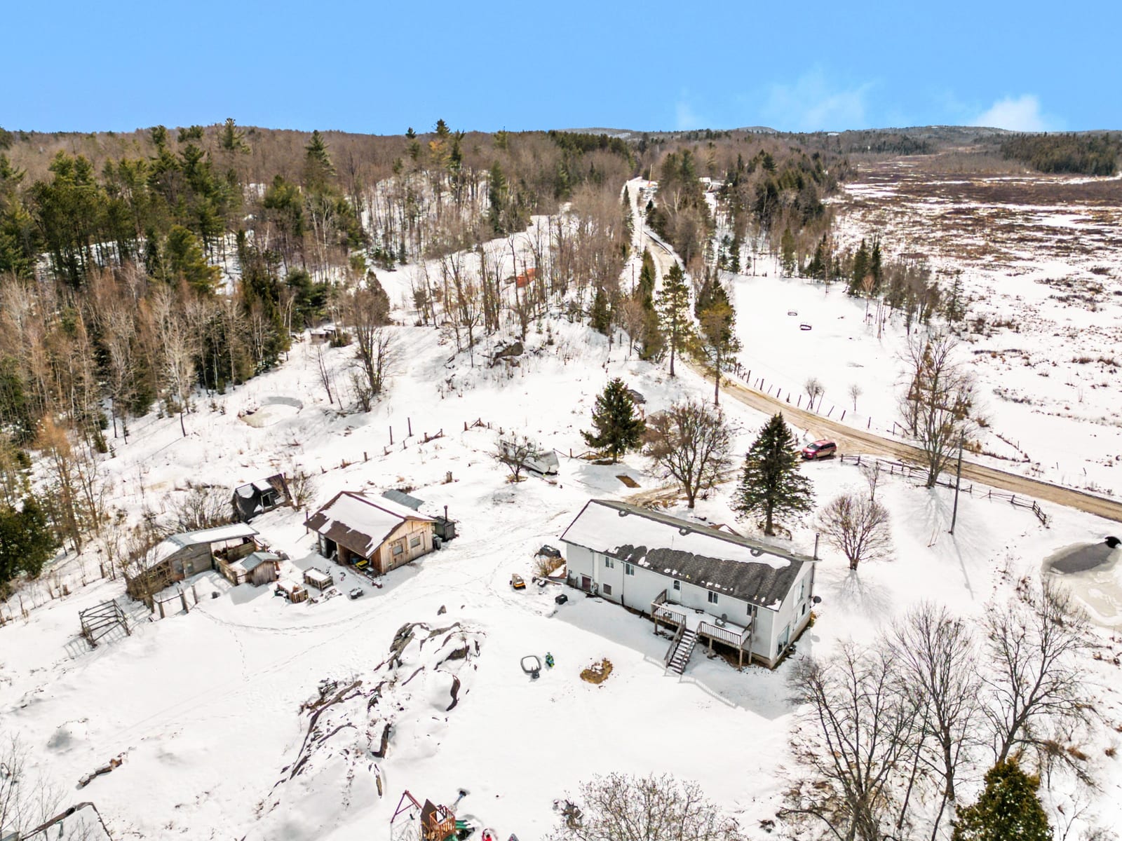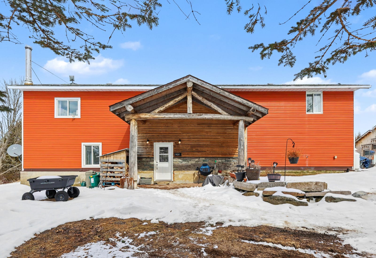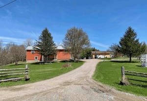 Welcome to 4237 Bell Line Road - a country lover's dream and the perfect setting for those seeking a peaceful, self-sufficient lifestyle with HOBBY FARM potential. Ideally located on a QUIET ROAD yet only 5 minutes from Highway 7, this beautiful property offers the best of rural living with convenient access to nearby amenities. Set on 13 ACRES of rolling hills and mature forest, the property features stunning rock outcroppings, a private pond, and a GENTLE CREEK flowing alongside the land. Enjoy collecting fresh eggs from the chicken coop or harvesting vegetables from your private garden, while nearby RECREATIONAL TRAILS offer endless opportunities for year-round outdoor enjoyment. The home offers 2400+ sq ft as per listing floor plan, 4 BEDROOMS and 2 FULL BATHROOMS, second level laundry room with deck access, plus a LARGE DEN used as an office and recreation space on the second level. The bright, OPEN MAIN FLOOR features a welcoming country kitchen, dining area with yard access, and a cozy living room with wood stove. A full bathroom and utility room/basement complete the main level. Many areas of the home have been freshly painted with new flooring installed on stairs and den as well as in the laundry room. The home can be heated with an exterior WOOD FURNACE, with wood easily harvested from the property; an additional PROPANE FURNACE was installed in 2026. Outside you'll find a LARGE GARAGE, utility shed, a two storey cow/feed barn, and two chicken coops. School bus service stops right at the driveway, and the road is prioritized for winter maintenance as part of the bus route. Located just 10 MINUTES FROM SHARBOT LAKE, where you'll find grocery, pharmacy, bank, marina, restaurants, brewery, LCBO, schools, parks, and a beautiful public beach. If you are looking for space, privacy, and a connection to nature without sacrificing convenience, 4237 Bell Line Road offers a rare opportunity to enjoy the very best of country living.