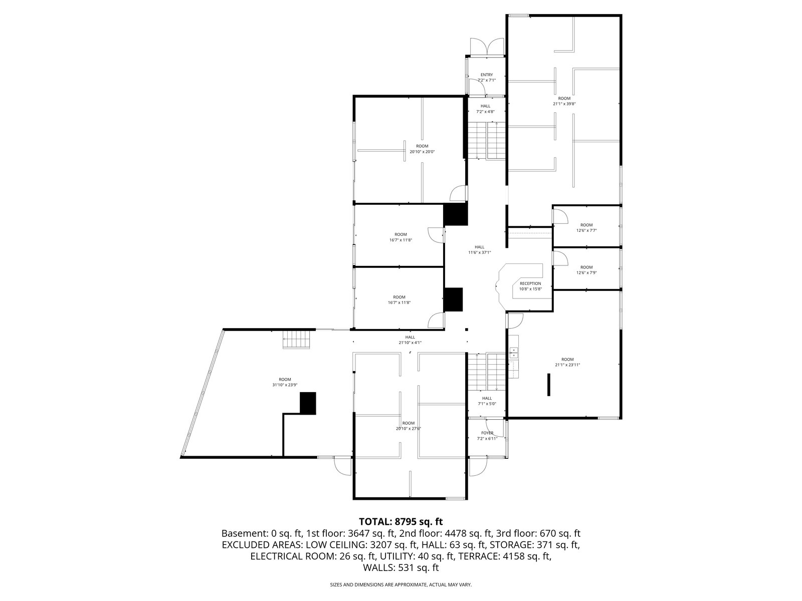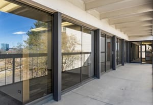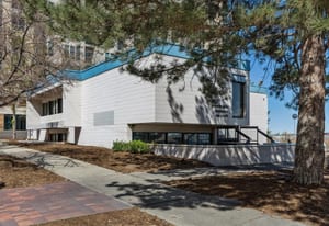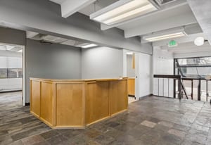 The building is not a generic office box. Cab Childress was a working Denver architect whose portfolio shaped mid-century and 1970s commercial and civic buildings across the Front Range. The structure he delivered here is three stories of brick over a small basement, organized around two main working floors with dual-stair circulation at opposing ends and a smaller penthouse-level element above. HVAC and roof were updated in 2022. The configuration reads as a signature headquarters building rather than tenant-ready speculative office — interior volumes, east-facing exposure, and architectural language all supporting an owner-user principal who wants a building that makes a statement.