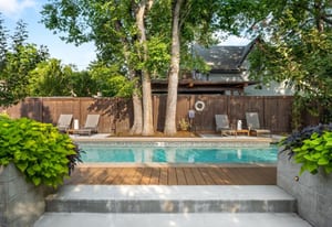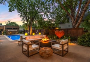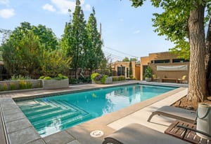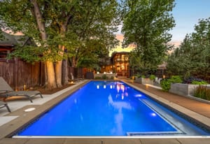 On one of the quietest, tree-lined blocks in Potter Highlands, this property delivers an outdoor living experience that rivals the Denver Botanic Gardens. The professionally designed grounds feature a resort-style heated pool (35 feetx14 feet) with UV/ozone sanitization, LED lighting, and electric child-safe cover; a built-in natural gas outdoor kitchen with custom lighting; bocce ball court; and a natural gas outdoor fireplace. Two cast concrete water features add tranquil ambiance, while custom ornamental steel fencing—crafted by the late artist Dennis West—frames the front and side yards. The privacy fence is horizontal cedar, blending warmth with artistry.