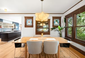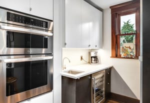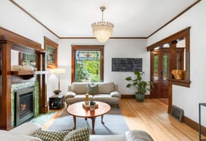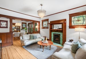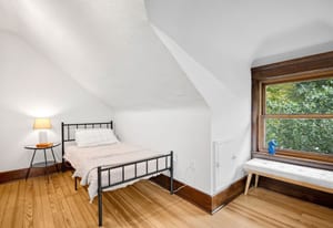 Inside, character and updates meet in harmony. The kitchen features a coffee bar, beverage fridge, LG convection oven, Bosch dishwasher, and Samsung refrigerator. Original stained glass and woodwork pair beautifully with newer doors, storm windows, and a refreshed interior. Upstairs offers three spacious bedrooms and two full baths, while the main floor hosts a guest suite with adjacent bath. The finished lower level is a private apartment with separate entrance, full kitchen, laundry, egress, and dedicated heating/cooling—ideal for guests, rental income, or multigenerational living.