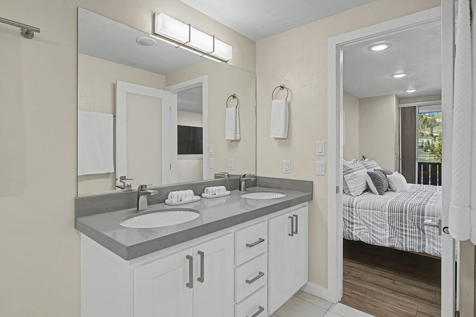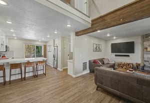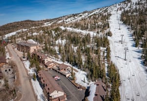 Fully renovated, turn-key ski-in/ski-out condo at Evergreen Condos in Brian Head, directly behind Chair 8. This 2 bed, 2 bath + loft (1,391 sq ft) lives like a private mountain retreat with forest and slope views from nearly every window and all four epoxy-coated patios (front-row views of fireworks included!). Features vinyl plank flooring, quartz countertops, tiled baths/showers, self-closing cabinets, newer stainless appliances, wood-burning fireplace, wet bar/coffee nook with wine cooler, soaking tub, and in-unit washer/dryer. Two primary suites plus loft sleep 6 with three king beds. Brand new heaters, eco-friendly window coverings, private one-car garage plus underground parking, and close to...