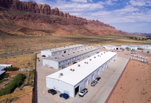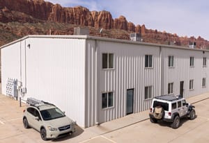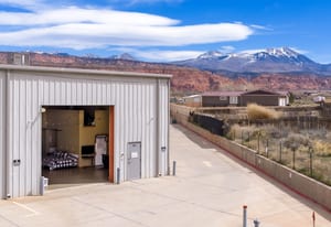 Live and work in one versatile Moab property designed for both comfort and productivity. This unique commercial unit is located in the Moab Business Park and features a 2-bedroom, 2-bathroom residence in the front, paired with a spacious, fully equipped garage workspace in the rear.