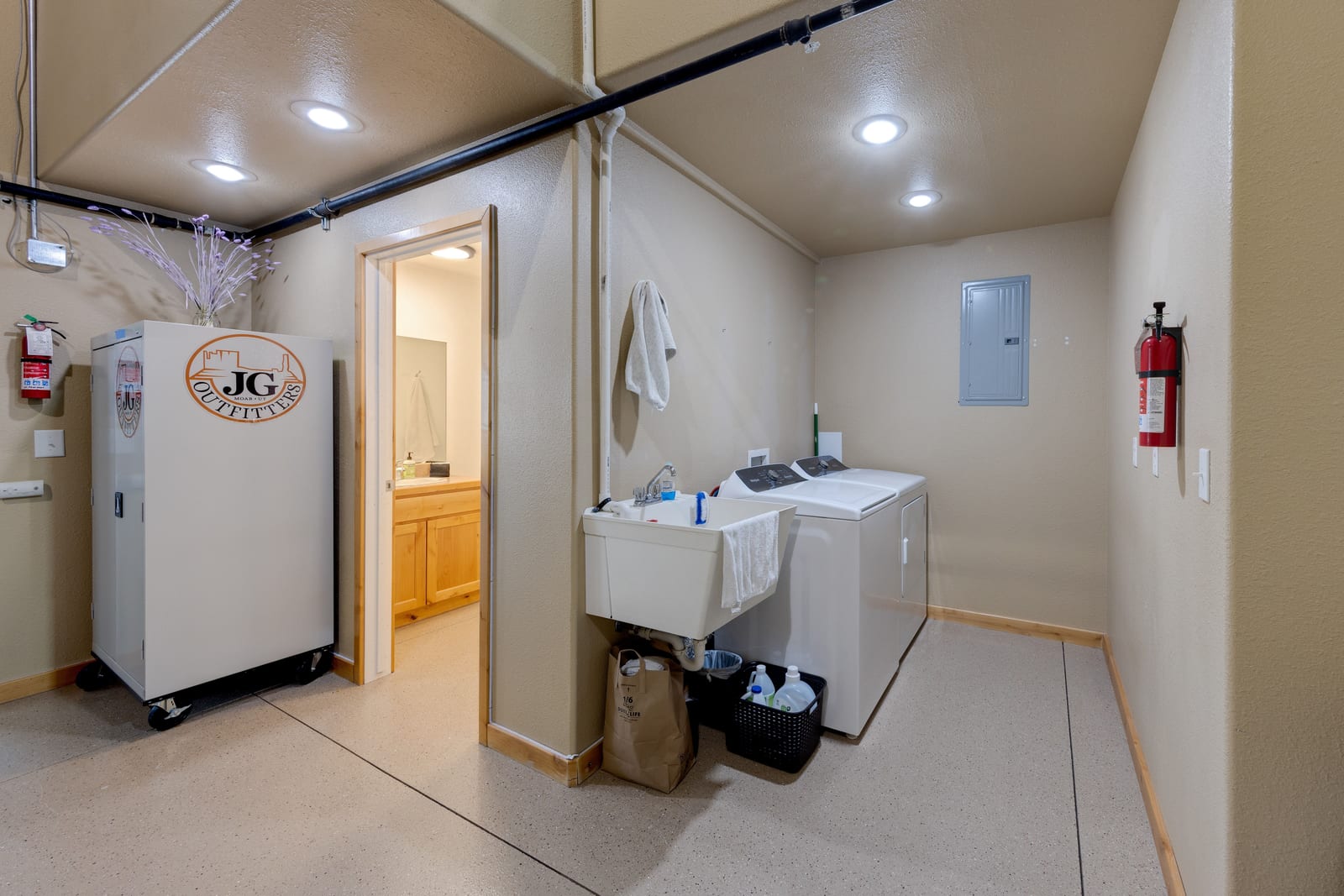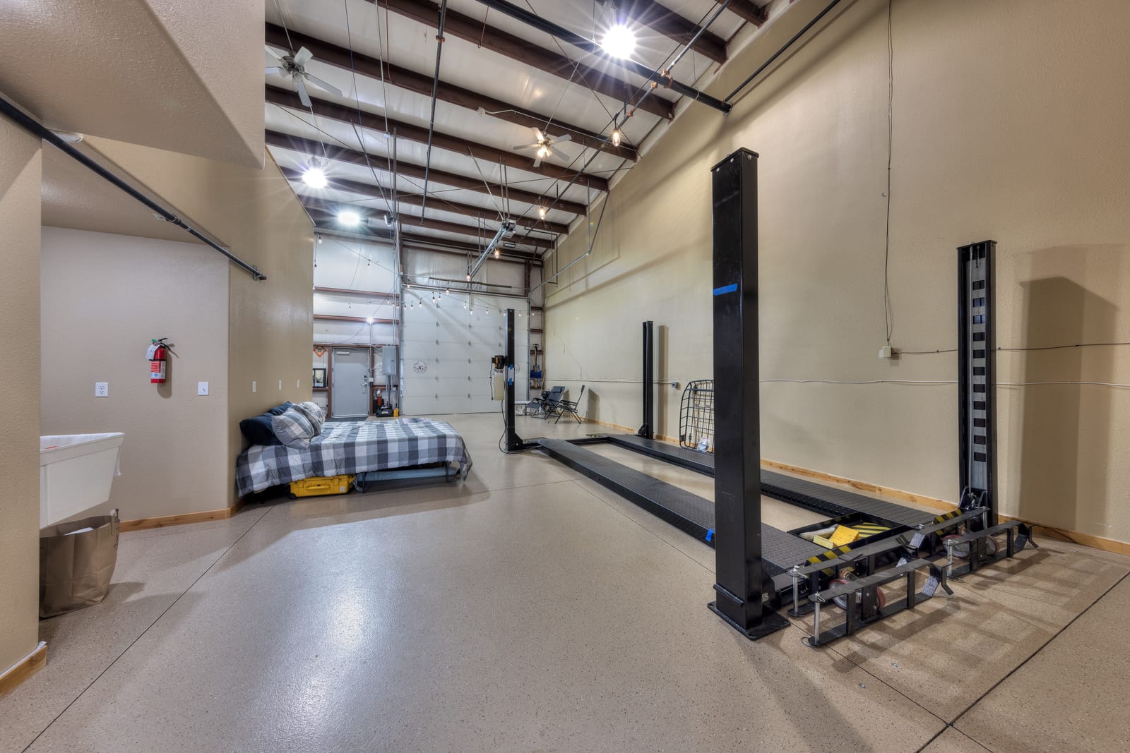Also attached is the expansive garage/workshop built for serious use, complete with a utility bathroom, laundry area, storage room, loft space, and ample parking for multiple vehicles or equipment.