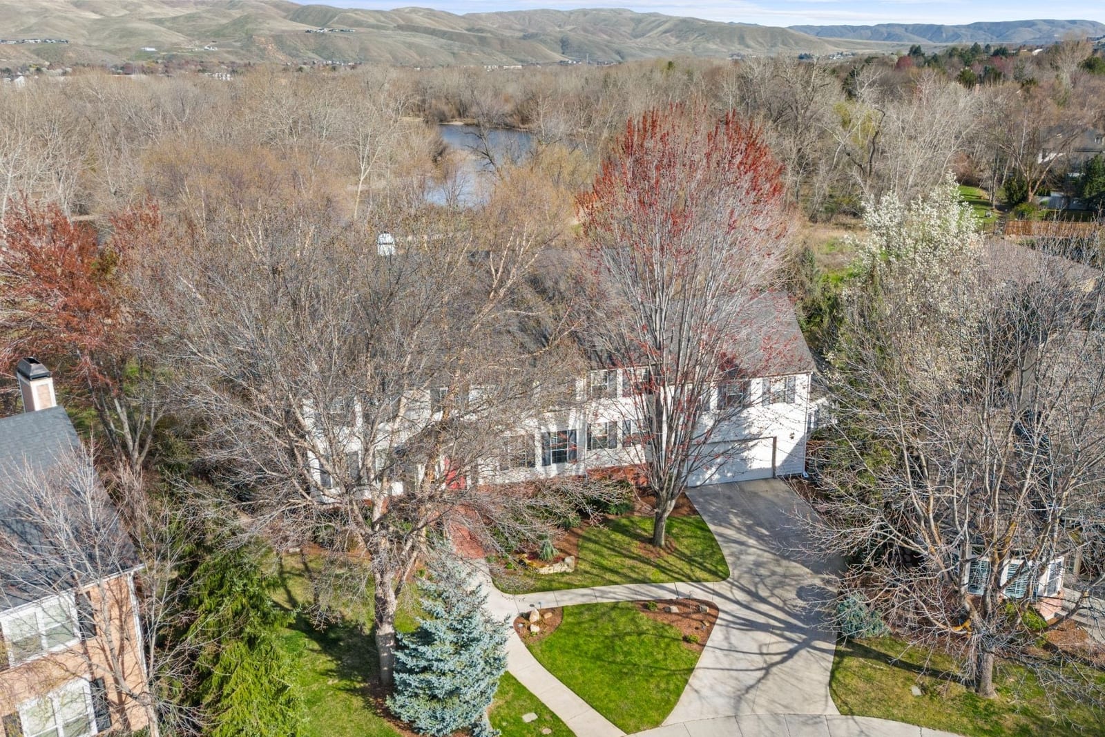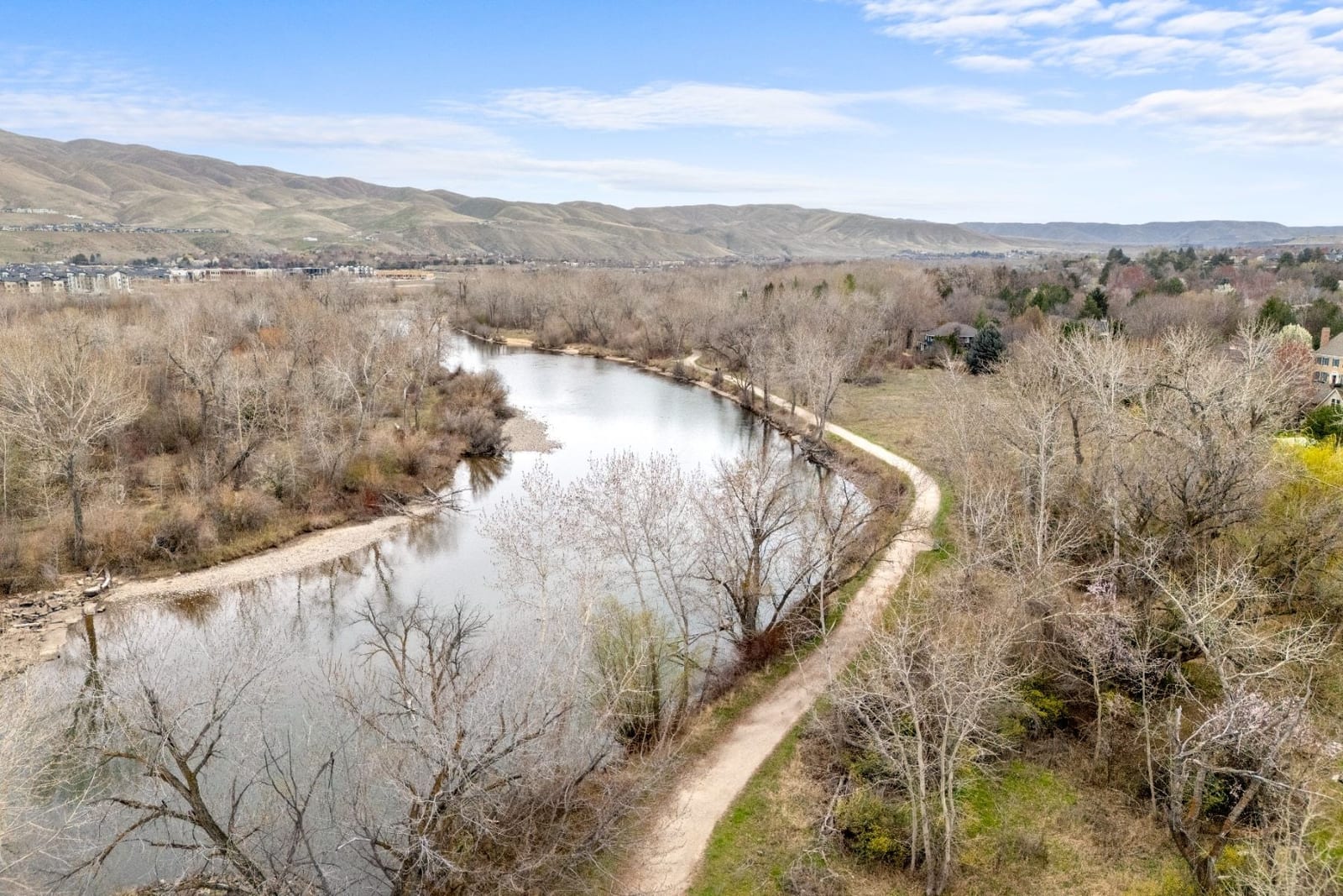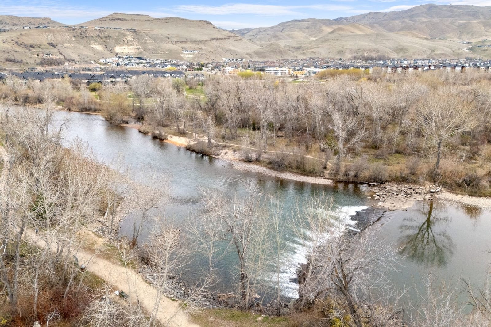 Tucked along a protected wildlife area along the Boise River, this Wood Duck Island home offers privacy, natural beauty, and an exceptional location. The backyard features a saltwater pool and spa, fire pit, tranquil creek, and direct access to the Boise River and Greenbelt. Located on a quiet cul de sac between Barber Park and Bown Crossing, the home provides easy access to recreation, dining, and everyday amenities. Inside, the light filled living room welcomes you with mountain views, a grand staircase, and open living and dining areas. The main level includes a private office and guest bedroom with adjacent full bath. The renovated kitchen features JennAir appliances, central island, quartz ...