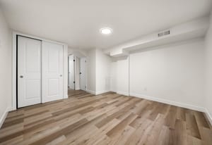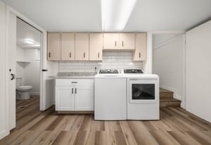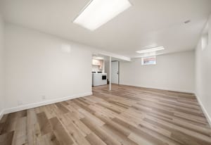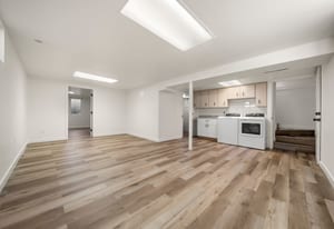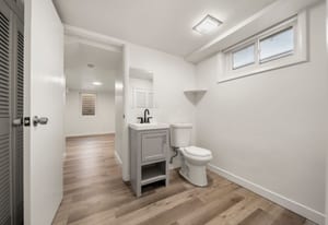 Downstairs, the fully finished basement expands your living options with two additional bedrooms, a bathroom featuring a walk-in shower, a secondary living space, and a dedicated laundry area.