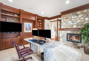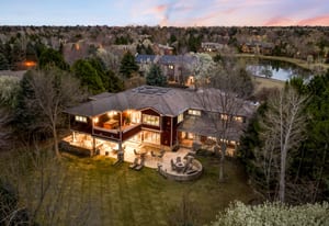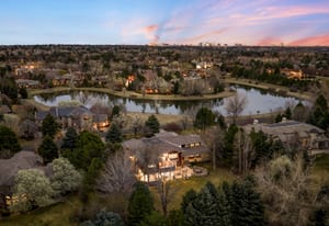 Set on a quiet cul-de-sac in Buell Mansion, 7 Waterside Terrace makes a strong first impression with its inviting circular drive. Framed by mature landscaping, the residence is thoughtfully positioned to take in mountain views and the peaceful setting of Buell Lake. Expansively covered porches and terraces create seamless indoor-outdoor living, offering inviting spaces to gather or unwind. Inside, warm wood floors and a welcoming entry set the tone for comfortable, elevated living. The great room features beamed ceilings and a fireplace, connecting easily to a well-appointed kitchen with premium appliances, ample workspace, and both butler’s and walk-in pantries—designed for everyday living as well as entertaining. The home includes 6-bedroom suites, each with its own bath and walk-in closet. Five are located upstairs, including a spacious primary suite with dual vanities, two walk-in closets, and a steam shower. A private lower-level guest suite provides added flexibility. Additional features include two main-floor studies, multiple laundry areas, a mudroom with built-in storage, and a four-car garage. The lower level offers space to relax and recharge with a fitness area, game room, bar, and theater. Outdoors, the landscaped grounds are anchored by a covered kitchen with a built-in grill, dining area, and fire feature—ideal for enjoying Colorado evenings. Conveniently located near Denver, this home combines privacy, comfort, and thoughtful design.