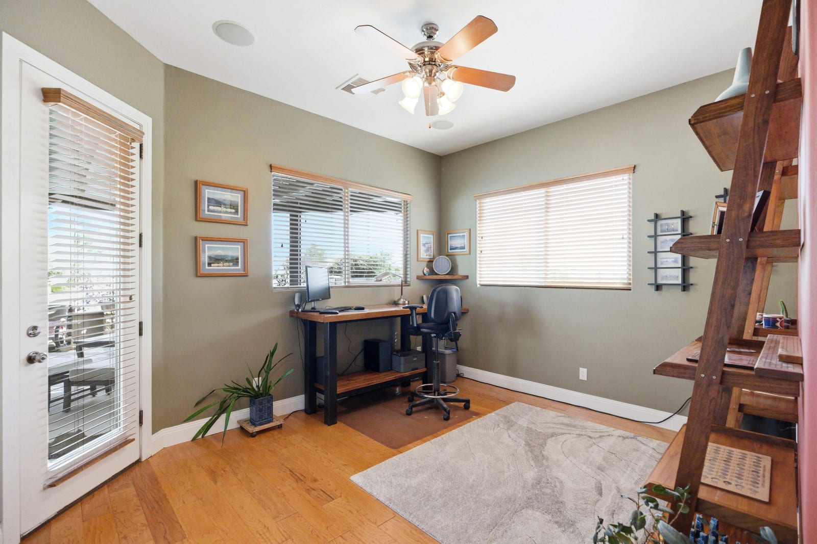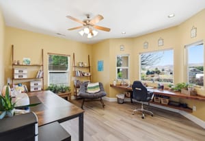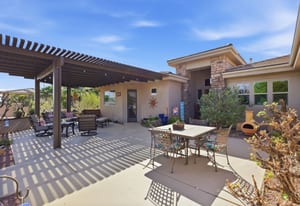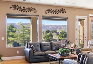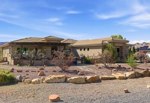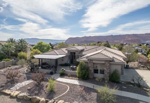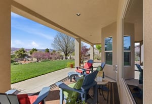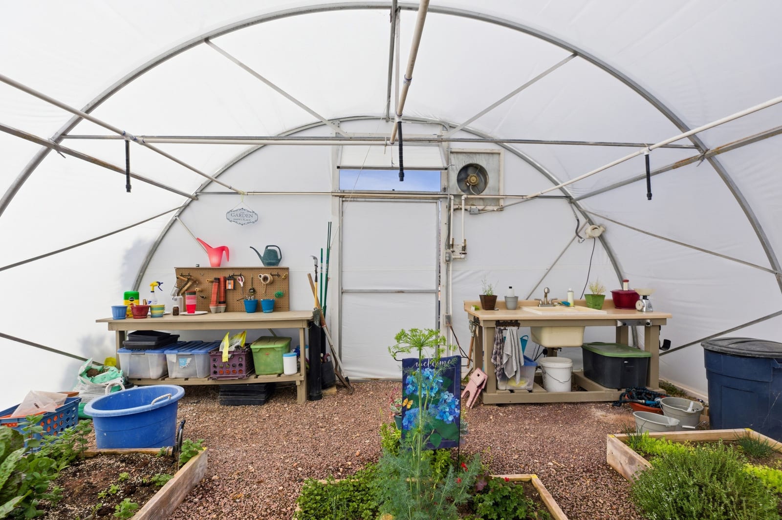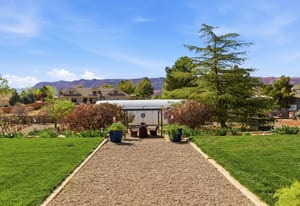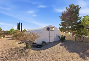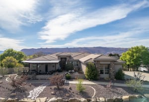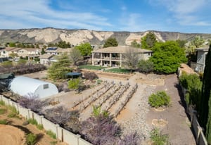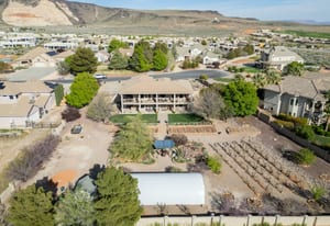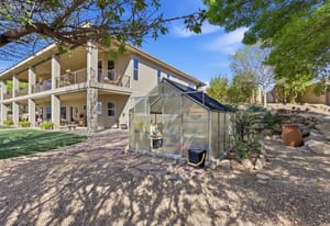 Tucked away on a fully fenced and beautifully landscaped .94 acres, this custom home blends comfort, creativity, and self‑sufficiency—set against breathtaking panoramic views of the Snow Canyon State Park mountains. The property includes a 50‑vine, wine‑producing vineyard and two greenhouses: a 9×12 hydroponic house and a 20×42 greenhouse with raised garden beds, creating a private, vineyard‑style setting with the ability to grow year‑round.