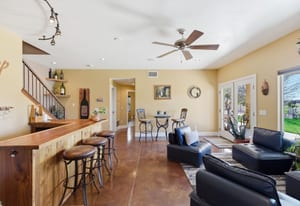 Outdoor living is a true sanctuary here. Enjoy a 900 sq. ft. covered upper deck and an additional 900 sq. ft. of covered patio space on the lower level, offering endless room for entertaining or quiet retreat. A newly added front‑courtyard pergola and multiple seating areas invite you to relax in every season. Start your mornings—or unwind at sunset—in the large Hot Springs hot tub, thoughtfully positioned to maximize both views and privacy.