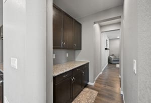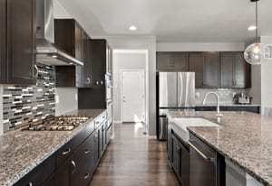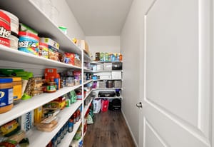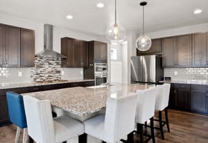 A gourmet kitchen is filled with an abundance of cabinets, counter space, large walk-in pantry and eating spaces.