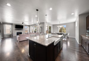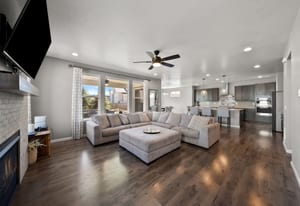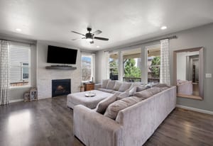 The family room is perfect for gathering, with a gas fireplace and plenty of windows for natural light.