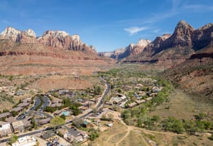COMMERCIAL PROPERTY I MILE FROM ZION NATIONAL PARK ENTRANCE. This .41 acre property is in the Central Commercial Zone of Springdale and can be used as a nightly rental. Three over-sized bedroom suites with are perfect for hosting large families or even multi-family short-term rentals. It comes with power, city water and sewer and 2.5 shares of irrigation water. This parcel along with the adjacent .51 acre parcel combined, make .92 acres in the highly coveted commercial property along Zion Park Blvd where over 5 million visitors pass by annually!
