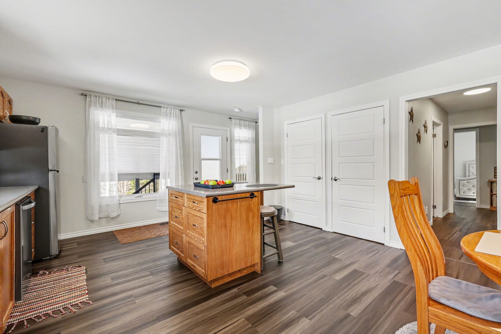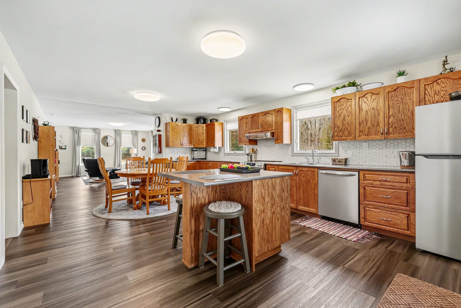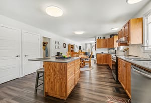 If you love the outdoors, hunting, hiking, or just enjoying privacy and fresh air, this is the place for you. Step inside and you'll find a beautiful large kitchen with island and ample cupboards, perfect for cooking and entertaining, as well as a primary bedroom with convenient 2pc powder room, 2 additional bedrooms, an office or storage room, and 4pc bath with laundry.