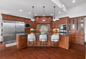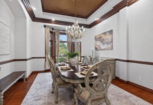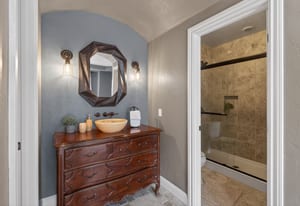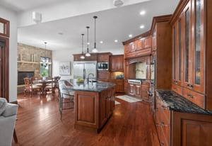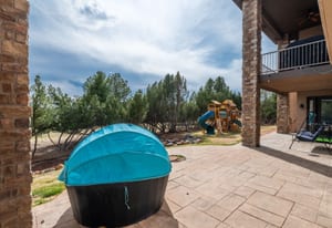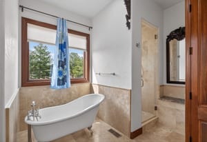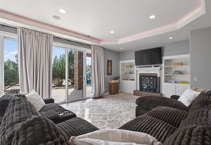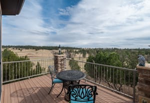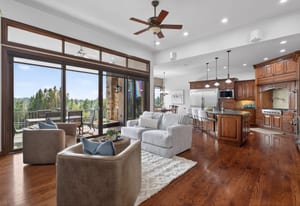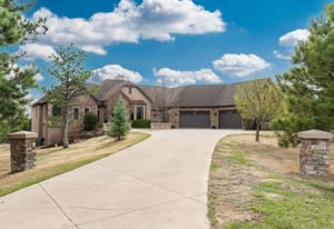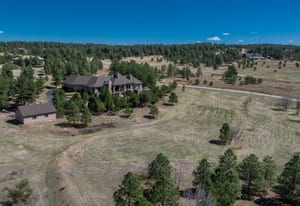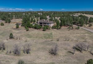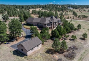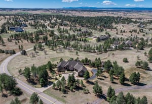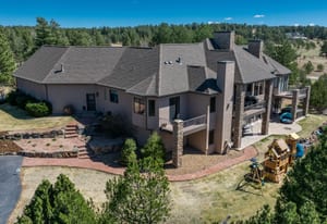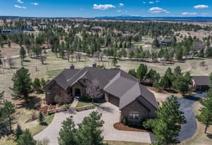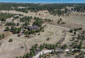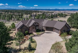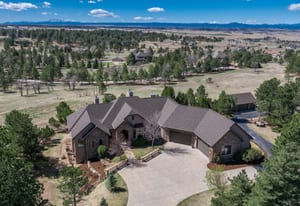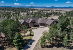 Set on five private, tree filled acres in the sought-after Sterling Tree Farm community, this striking 7,000-square-foot custom home blends modern style with timeless luxury, all framed by unobstructed Pikes Peak views. Thoughtfully designed as an ideal family home, it offers abundant space both inside and out, with plenty of room to live, gather, and play. The main level has been refreshed with updated, contemporary paint tones, creating a clean, elevated aesthetic that complements the rich mahogany detailing throughout. Designed with today’s lifestyle in mind, the layout offers generous, flexible spaces that allow families to spread out comfortably while still feeling connected. A chef-inspired kitchen with a Butler’s pantry anchors the space, while the formal dining room makes a statement. Two expansive main floor bedrooms each feature their own private laundry, offering comfort and convenience with a thoughtful, modern touch. Architectural highlights include a stunning main-level library that adds character and craftsmanship you don’t often find. The lower level is designed for both entertaining and everyday living, with 3 additional bedrooms, a second laundry room, a high end theater, and a beautifully finished secondary kitchen. A handicap-accessible basement entrance further enhances functionality and ease of access. Outdoor living is equally inviting, with a serene water feature, private patio, and three expansive decks perfectly positioned to take in the mountain views. There’s ample room for outdoor fun, including dedicated spaces to play and a classic horseshoe pit, perfect for gathering with family and friends. The property also includes an oversized four-car attached garage and a 1,800-square-foot outbuilding with a 3-car garage door ideal for storage, hobbies, or a workshop. Private, polished, and perfectly located near Parker, this home delivers space, style, and sophistication.