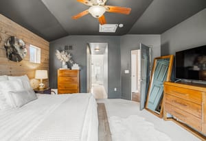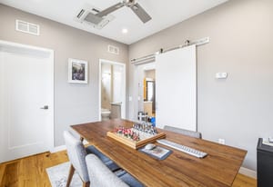 Rare find in Eagle Ranch! Boasting 6 bedrooms plus a den, this exceptional residence is nestled on a quiet street and offers custom craftsmanship and elevated design, thoughtfully curated for both everyday living and effortless entertaining. A standout feature is the southwest-facing, renovated covered patio, designed to extend outdoor living for multiple seasons. Complete with stone pavers, integrated lighting, overhead heaters, fans, and a dramatic LaCantina sliding door with retractable screen, this space seamlessly connects indoor and outdoor living--perfect for entertaining or quiet relaxation. Inside, details include a reclaimed wood fireplace surround and warm wood accents throughout. A highly functional layout offers a rare connection to the attached, finished, and heated garage through an oversized pantry and renovated mudroom with custom built-in lockers and a dog door leading to a fully fenced yard. The garage also features a dedicated dog wash station. Outdoor living is enhanced by raised garden beds, irrigation, and an energy-efficient hot tub. A private one-bedroom lock-off above the garage provides excellent versatility or income potential, complete with a gourmet kitchen, living area, air conditioning, full bathroom with soaking tub, and in-unit washer and dryer. Additional upgrades include air conditioning, a new whole-home heat pump system (2025), Lutron smart lighting, solar panels, renovated kitchen spaces, enhanced lighting, Wi-Fi monitored smoke and CO detectors, updated flooring, and an upgraded laundry room--bringing modern efficiency and convenience to this thoughtfully upgraded home. Ideally located on the valley floor, this home is within walking distance to coffee shops, trails, and Brush Creek Elementary School--offering a blend of comfort, convenience, and community.