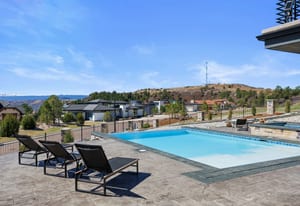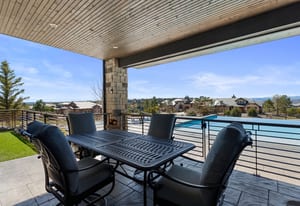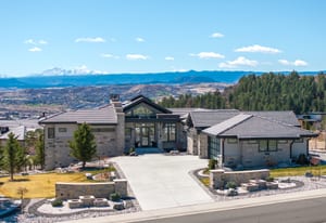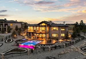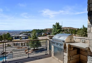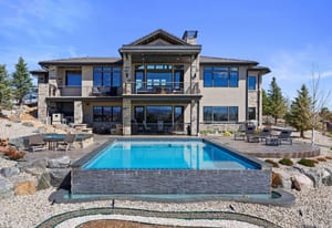 Positioned on an elevated corner lot, this spectacular modern ranch has it all! Pikes Peak views from every room, a saltwater infinity pool and spa, resort-style outdoor living, and main-level living in a home that looks and feels brand new. The expansive covered deck is an entertainer's dream, offering front-row views of the sunrise, sunset, and summer fireworks over the town of Castle Rock, all framed by the mountains. With low-maintenance xeriscape grounds that bloom continuously from spring through fall, this is Colorado living at its finest. Inside, the great room is highlighted by 20-foot vaulted ceilings, a custom ridge skylight that opens for a breeze, and a wall of windows that frame Pikes Peak. The linear fireplace with Italian marble surround anchors the space, while the open flow carries seamlessly into the kitchen, appointed with Dacor and Sharps appliances, double ovens, 36-inch refrigerator and freezer, and floor-to-ceiling white cabinetry. The main-level primary suite offers a true retreat with a fireplace, bathroom with freestanding soaking tub, multi-head walk-in shower, and a generous two-sided walk-in closet with custom organization system. The lower level expands the living experience with a recreation room, fireplace, wet bar, gym, and walkout access. Outside, the upper covered deck features an outdoor kitchen and unobstructed views in every direction. Below, the gated lower patio flows directly to the infinity pool, jet spa, and built-in fire pit, all surrounded by professionally designed landscaping, flagstone pathways, and programmable outdoor lighting. Every detail has been considered, from the automated smart home system controlling lighting, audio, security, and window coverings via mobile app, to the $20K+ wiring investment, whole-home surround sound, and resort-caliber pool technology. With over $700K in seller improvements, homes this exceptional, in this condition, and with these views, simply don't come along often.