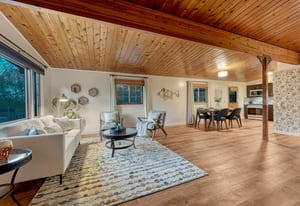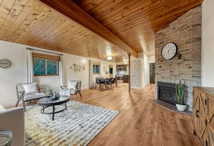 Welcome to the ‘Treehouse Retreat’. Built in 1966, this home offers classic mid-century modern curb appeal, but step inside and the experience transforms into something entirely unexpected. Perched high on a bluff and surrounded by mature trees, the setting evokes a true “treehouse” retreat; private, peaceful, and immersed in nature. Located on a rare quarter-acre river bluff lot in Aberdeen, where only a handful of homes share this vantage point, this property presents a unique opportunity to own in one of Pueblo’s most coveted settings. Thoughtfully positioned to maximize privacy, the home features a flat, fenced side yard, while expansive decks wrap the opposite side and rear to capture views and embrace Colorado’s outdoor lifestyle. With 4 bedrooms, 2 full updated baths, a 2-car garage, newer she-shed, and an additional storage shed, the property offers both function and flexibility. Outdoor living truly shines here, with multiple spaces ideal for entertaining, unwinding, or simply taking in the natural surroundings. A private trail leads directly to the Arkansas River, providing immediate access to biking, fishing, tubing, or peaceful riverside walks all from your backyard. Inside, warmth and character define the space, highlighted by knotty pine tongue-and-groove ceilings, a striking floor-to-ceiling stone gas fireplace, and an updated kitchen with granite countertops and newer appliances. The walk-out basement with a second kitchen offers excellent potential for guests, multigenerational living, or rental income. Homes on the Aberdeen River bluff rarely come to market; this is more than a home. It’s a lifestyle defined by privacy, nature, and convenience, all within city limits.