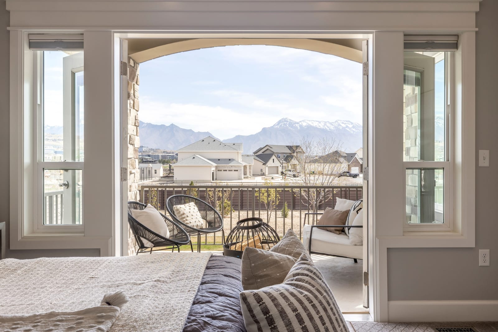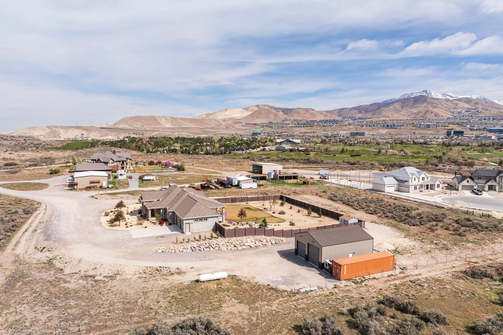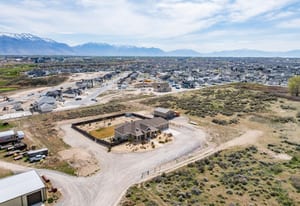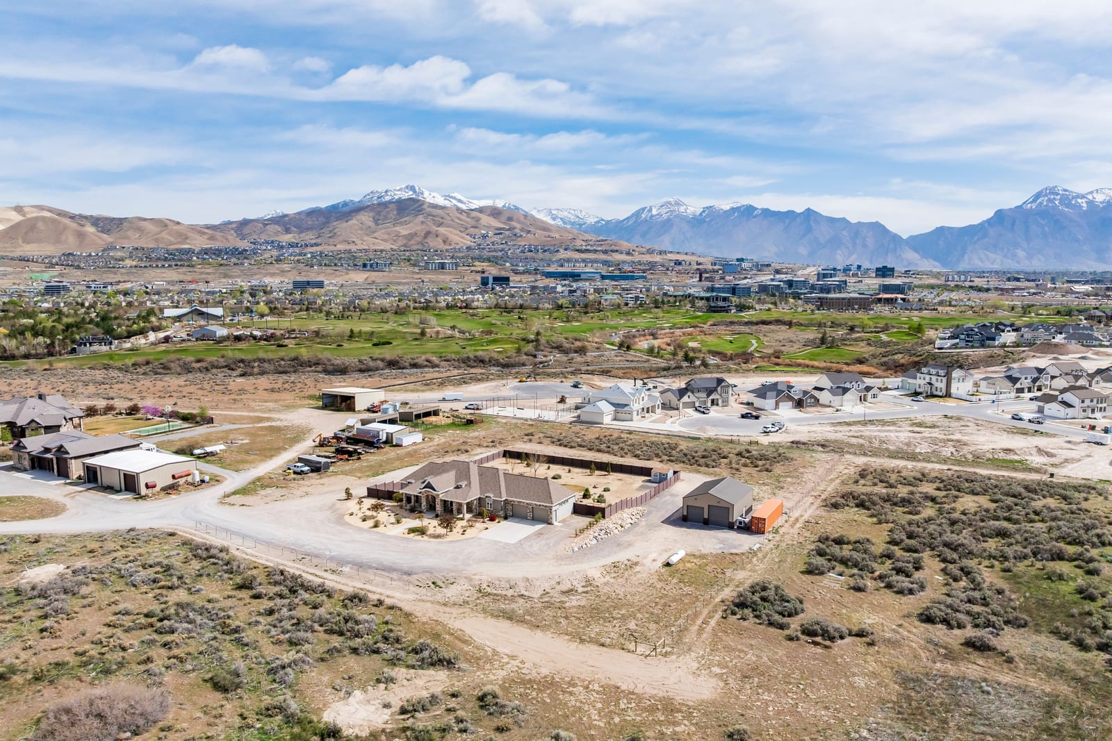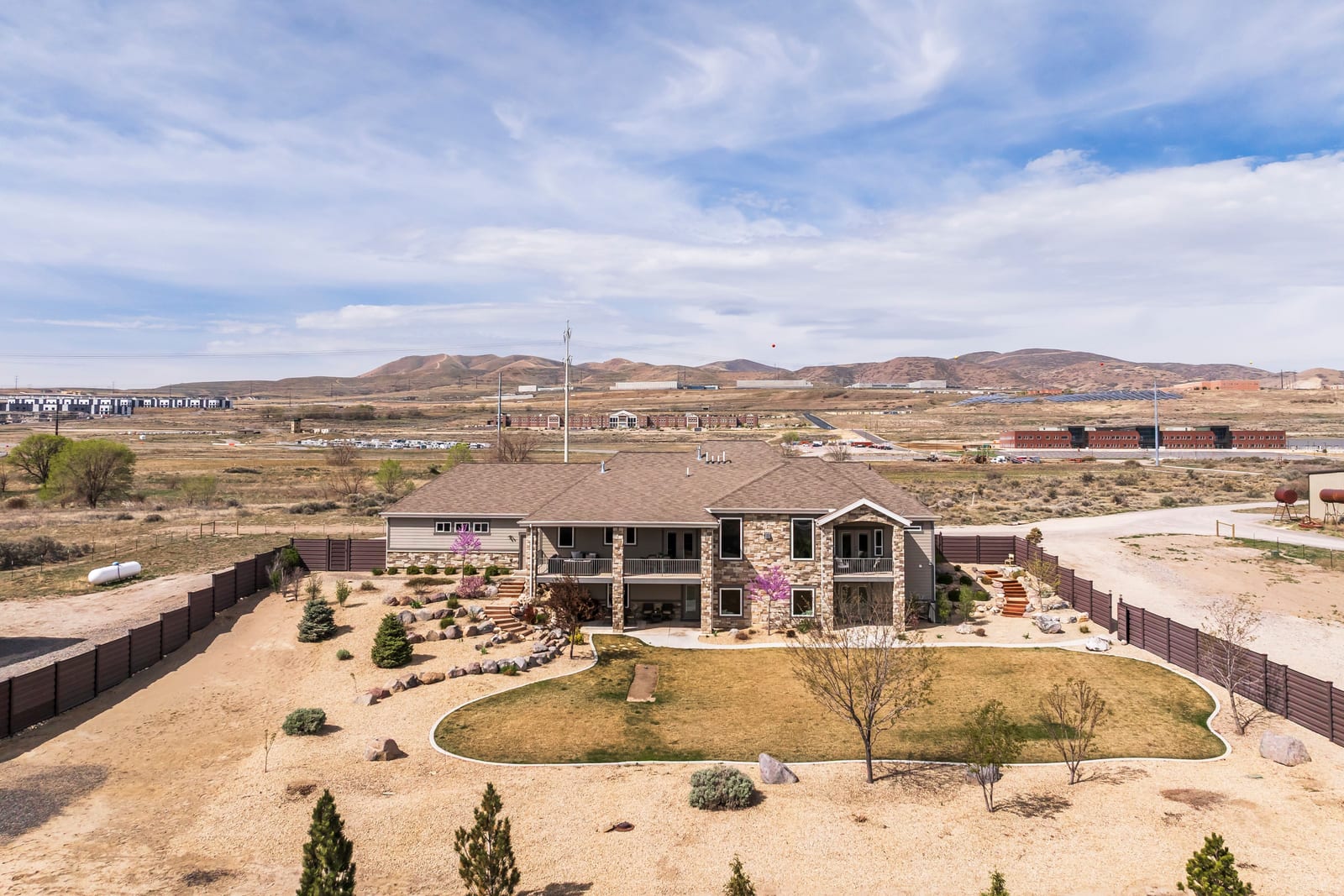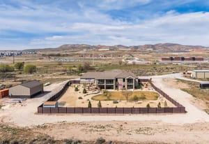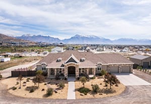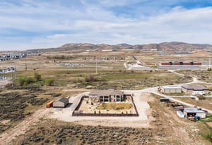 Stunning custom home on 2.81 acres in Lehi offering space, privacy, and equestrian rights. Built in 2017, this beautifully designed 5,998 sq ft residence combines modern finishes with functional living, all set against breathtaking mountain views. This home has a private drive (no traffic), ideally located between Provo and Salt Lake with quick freeway access and close proximity to Thanksgiving Point, Silicone Slopes, shopping and restaurants. The main level features an open-concept layout with a striking floor-to-ceiling fireplace, expansive windows, and abundant natural light. The gourmet kitchen is equipped with custom cabinetry, granite and quartz countertops, a large island, induction cooktop, prep sink, a hidden office, and walk-in pantry with convenient Costco/grocery door for easy unloading. Enjoy two office spaces or use one as a living room. Adjacent dining and living areas create a seamless flow ideal for entertaining. The home offers 4 spacious bedrooms (with potential for a 5th using the basement game room) and 4.5 bathrooms, including a well-appointed primary suite with private deck, a luxurious spa-like bath (including a walk-in shower and large soaker tub) and a generous, custom walk-in closet. Wide stairways and hallways add to the thoughtful design and livability. The fully finished walk-out basement includes a second kitchen, large game room, two spacious bedrooms, an exercise/craft room, and second laundry-perfect for entertaining or multi-generational living. Enjoy outdoor living with two decks and two covered patios, an east-facing backyard ideal for shaded summer evenings, and front-facing orientation that helps with winter snow melt. Take in incredible mountain views and even watch Thanksgiving Point fireworks right from your property. The backyard features Trex privacy fencing, storage shed and low-maintenance water-wise landscaping, with automatic sprinklers and fertilizer system. Equestrians and outdoor enthusiasts will appreciate the nearly 3 acres of usable land, with proximity to Jordan River Parkway trails, equestrian parks, and a nearby agricultural center, plus inclusion in a future equestrian-focused community with planned trails and riding arena. The property includes a 2-car attached garage, plus a 30x40 detached shop with RV door and 240V power, ideal for hobbies, storage, or workspace. Designed for comfort and efficiency, this home features two furnaces, two AC units, two water heaters, water softener, smart thermostat, whole-home humidifier, large storage room, walk-in safe, gas fireplaces, two laundry rooms, fiber optic internet, security system, and a full fire sprinkler system. Utilities include shared well, septic system, propane, city electricity, and trash service. Well cared for by the original owners, this is a rare opportunity to own a newer home with acreage, equestrian potential, and high-end features-offering the perfect balance of rural living and city convenience.