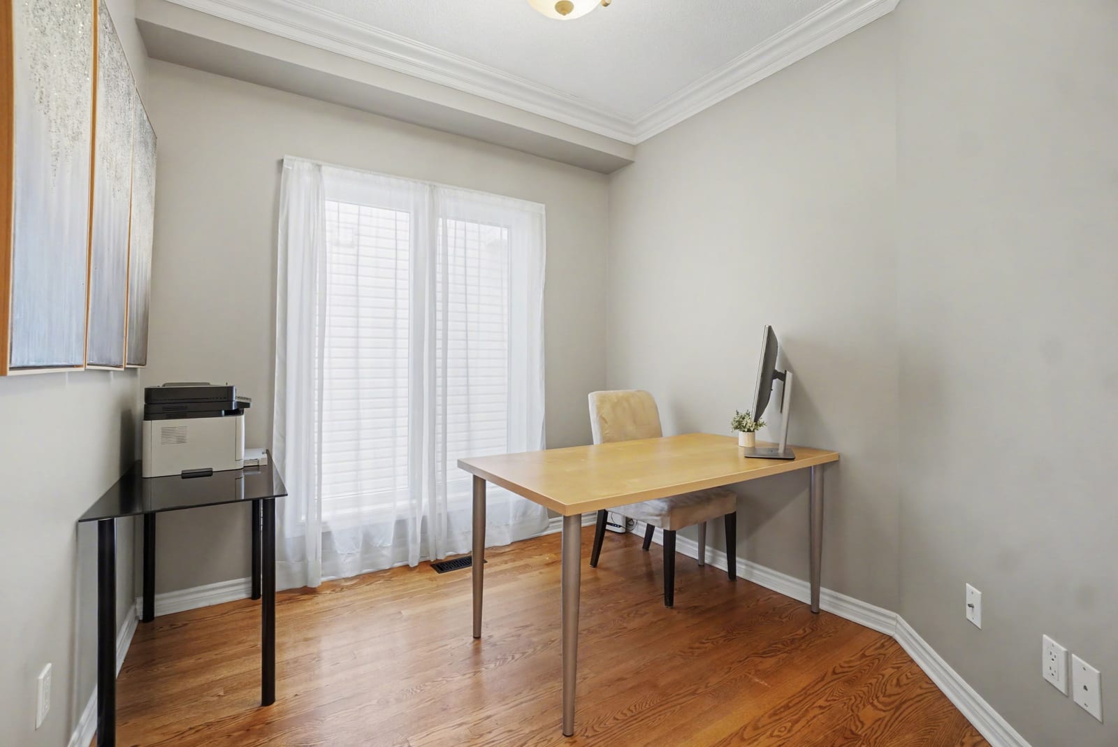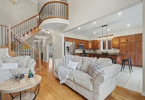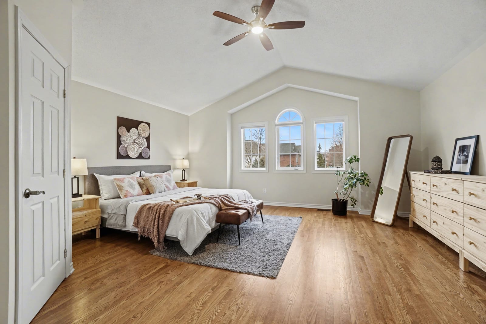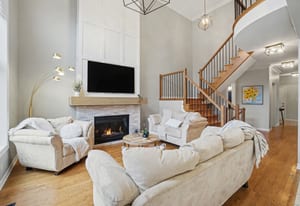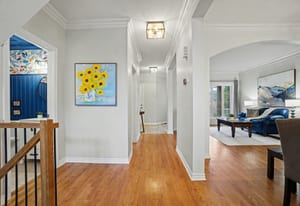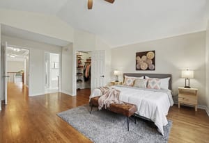 Upstairs, a stunning hardwood staircase with modern railing leads to the second floor. The expansive primary retreat can easily accommodate any size bedroom set. It offers a vaulted ceiling, rich hardwood flooring, a generous walk-in closet, and a luxurious five-piece ensuite complete with a relaxing soaker tub. Three additional bedrooms are all generously sized with...