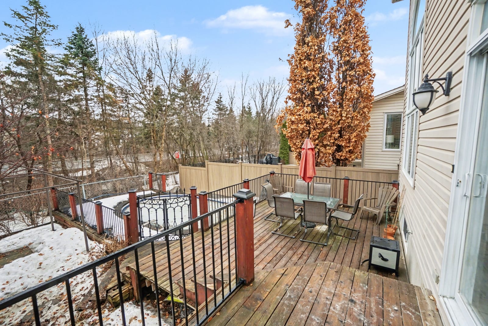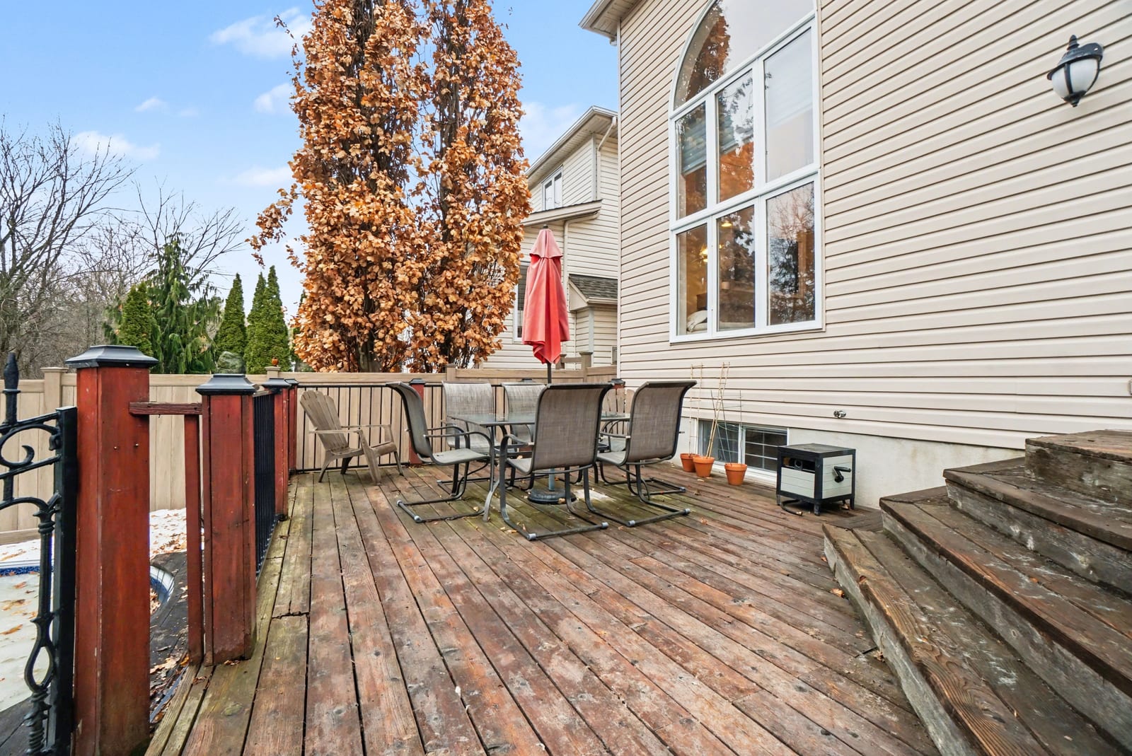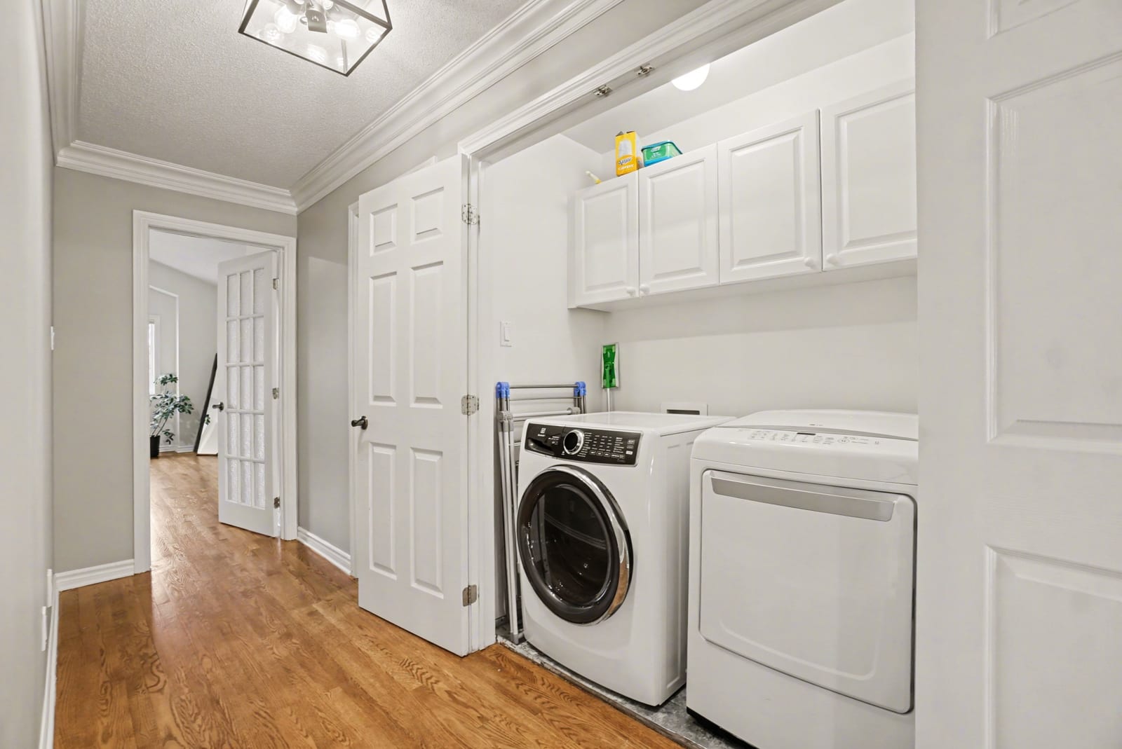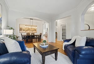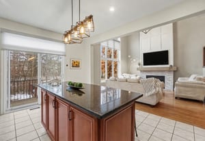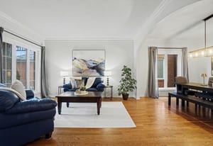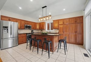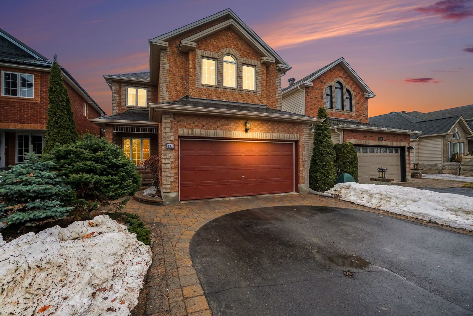 The elegant living and dining rooms are beautifully appointed with large windows, arched doorways, and elegant crown moulding, creating a warm and inviting atmosphere. At the heart of the home, the chef-inspired kitchen is sure to impress, featuring rich cabinetry, luxurious granite countertops, gleaming stainless steel appliances, a neutral backsplash, bonus pantry cupboards, and an oversized island with convenient seating.