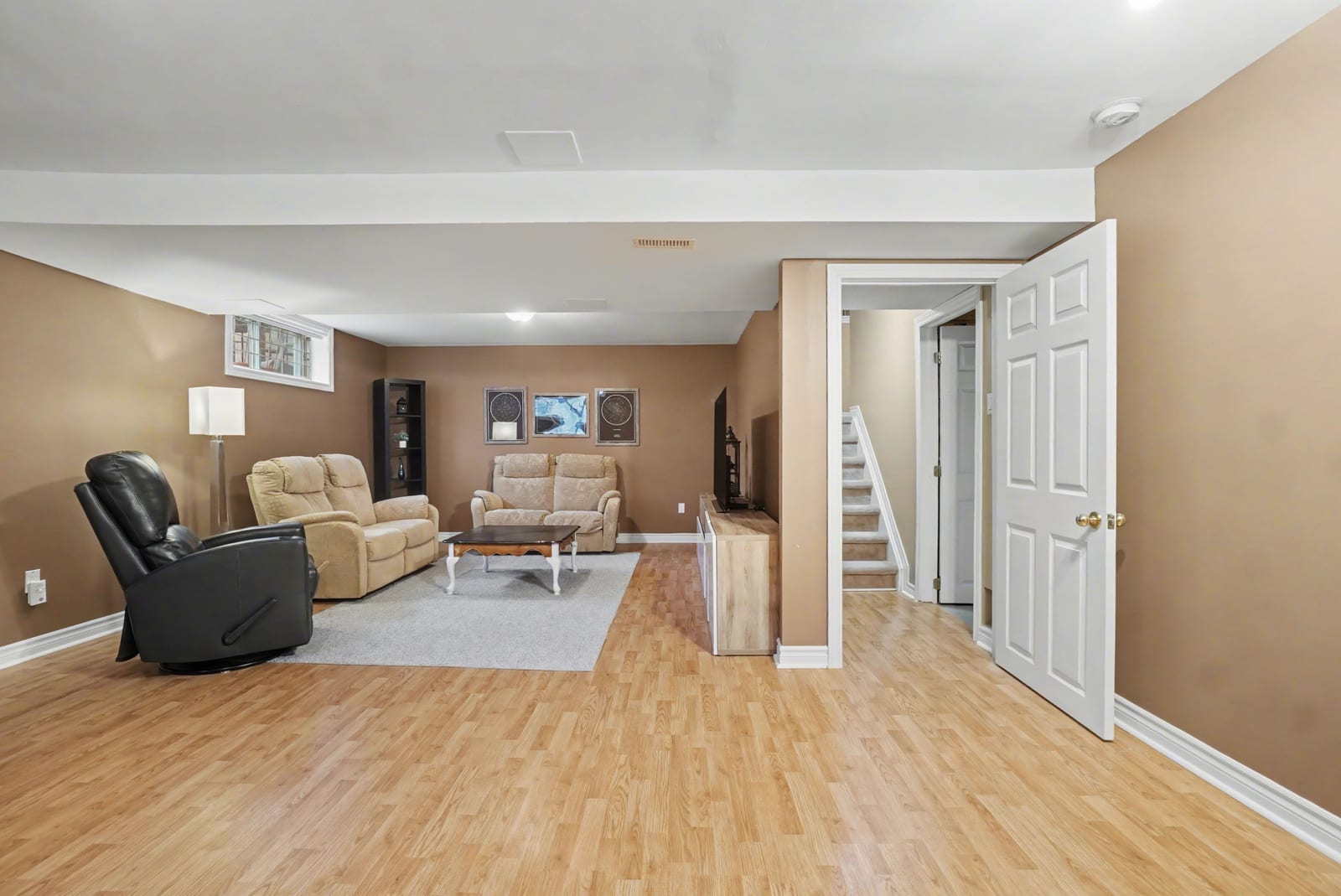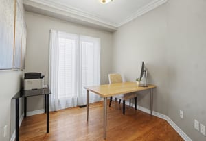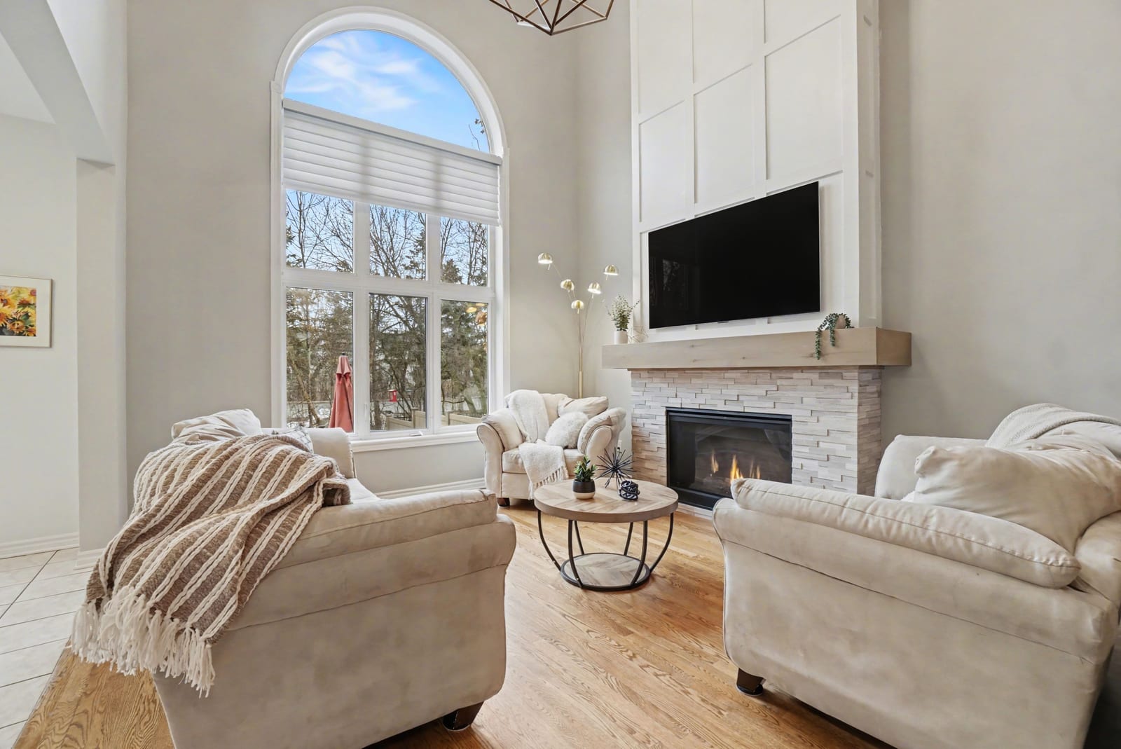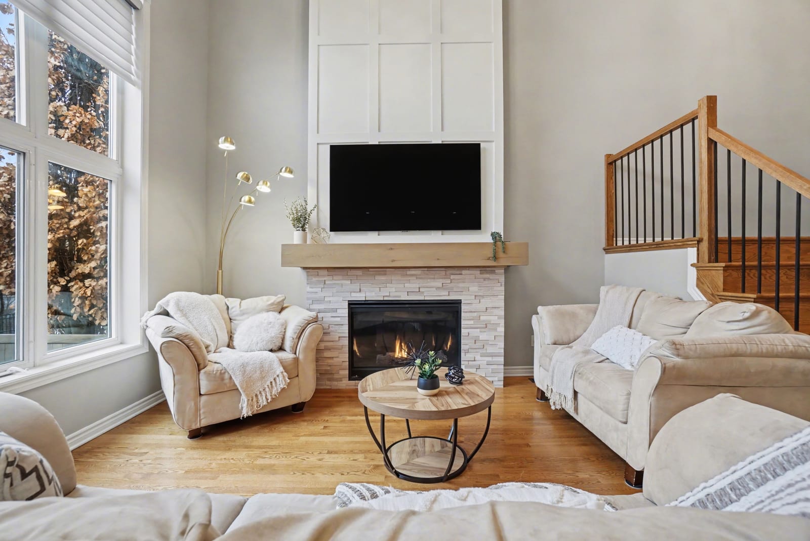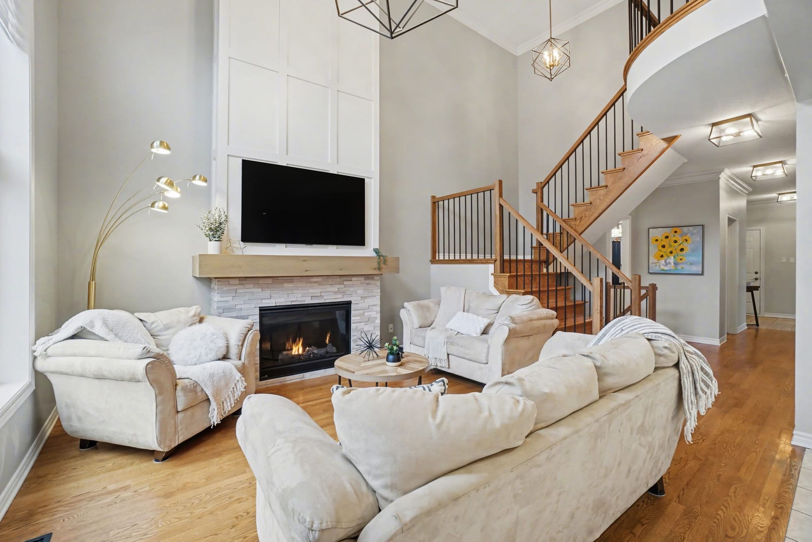 The adjacent family room is truly breathtaking, highlighted by a striking two-storey accent wall and a cozy gas fireplace —perfect for gathering with family and friends. A spacious main floor den provides an ideal work-from-home setup, while a stylish, Pinterest-worthy powder room adds a touch of personality. A large walk-in closet at the front entrance and direct access to the double car garage complete this level.