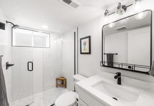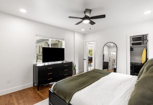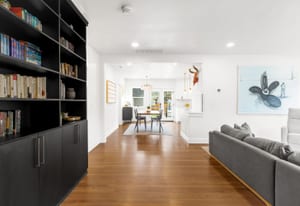 Dreamy Park Hill living, set on a large lot with a layout that’s increasingly hard to find: five bedrooms total, including three on the main level, plus a fully finished lower level, all on a coveted tree-lined block. A graceful ascent leads to a front patio, an inviting outdoor extension for golden-hour gatherings. A soft archway entry opens to a luminous main level anchored by a striking wall of built-in bookcases. A gas fireplace centers the living space, framed by expansive south + west-facing windows, drawing in sunlight. The open-concept layout transitions into a dining space, elevated by a statement light fixture and direct access to the backyard through glass French doors for effortless indoor/outdoor entertaining. The kitchen is equally considered, featuring stainless steel Bosch appliances, a gas range, custom hood, and full-height tile backsplash. Abundant cabinetry, an eat-in peninsula island, and convenient side access to the detached garage enhance everyday functionality without compromise. The main level hosts a serene primary suite with dual closets and en-suite bath offering double vanities & walk-in shower. Two additional bedrooms-one with built-in desk space-share a full bathroom, offering flexibility for guests or home office use. The lower level expands the living experience with substantial secondary space - ideal for media, recreation, or relaxed evenings at home. Two additional bedrooms, a full bath, oversized laundry with counter space and utility sink, and a dedicated storage room add comfort and practicality. Out back, a fully fenced yard unfolds with intention: elevated concrete patio, generous green space, and a private driveway leading to the 2-car garage with gated electronic access for added privacy. This location places Honey Hill Café, City Park, the Denver Zoo, Park Hill Elementary, and the Museum of Nature & Science all within easy reach, blending Park Hill charm with Denver’s most iconic destinations.