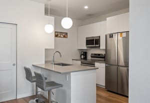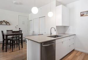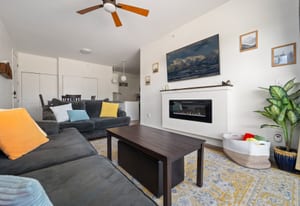Thoughtfully designed with a sleek, open-concept layout, this fully furnished 2-bedroom + bunk nook, 2-bath home maximizes both space and functionality. The light-filled living area flows effortlessly into the kitchen, featuring bar seating and a dedicated dining space--ideal for entertaining or relaxing after a day outdoors.