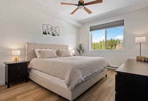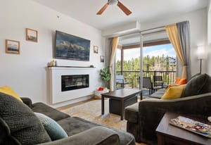 Welcome to Sunnyside Flats, a desirable community where modern design meets mountain convenience. This top-floor, corner residence enjoys a private setting at the back of the community, offering both tranquility and elevated views.
