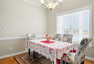 The kitchen is thoughtfully laid out with a convenient peninsula that overlooks a bright breakfast nook, making everyday meals and morning coffee effortless and enjoyable. The DOUBLE PANTRIES provide extra space for storage. For more formal gatherings, you'll love the elegant dining room accented with classic hardwood floors.