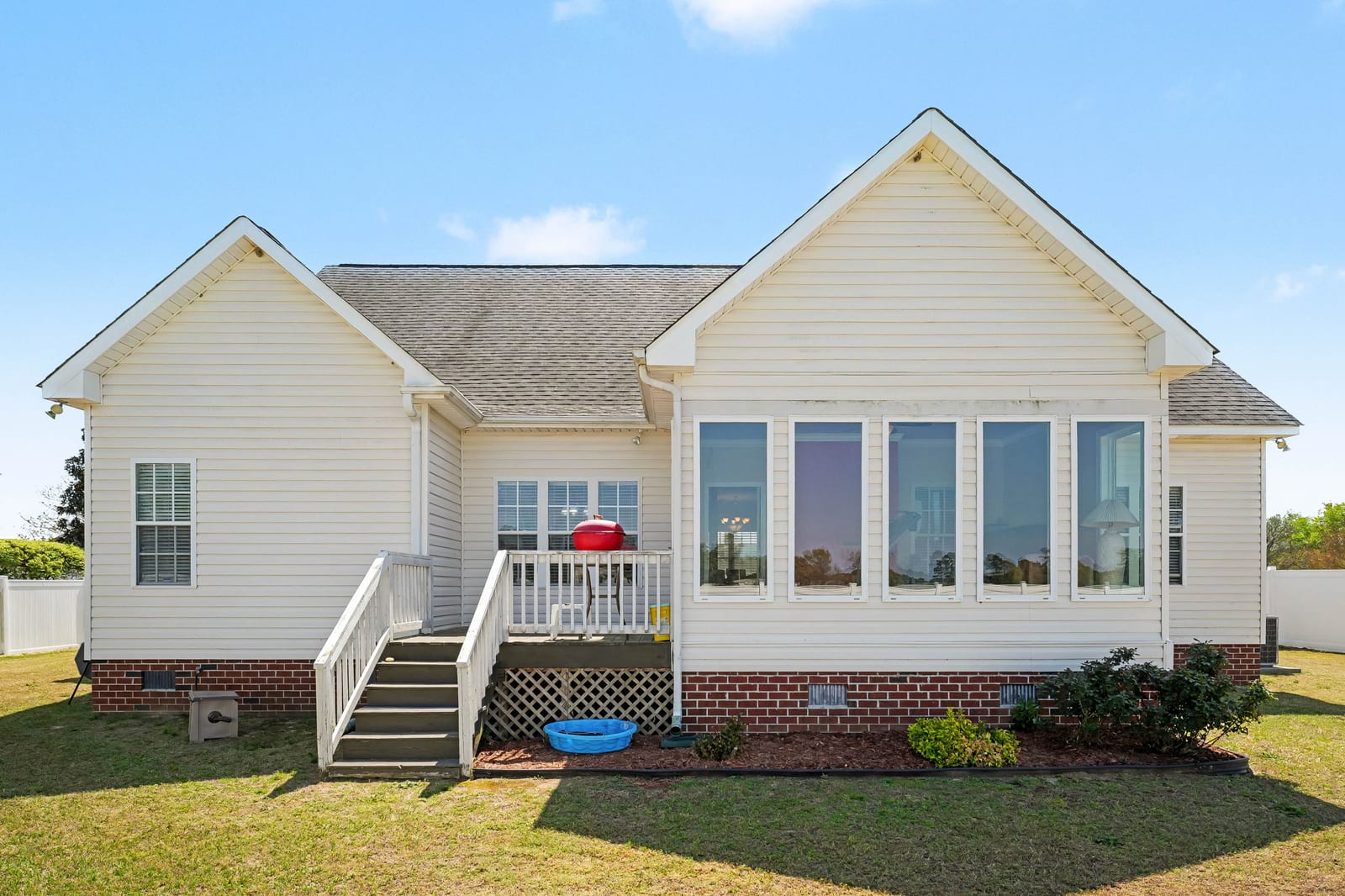 The MAIN FLOOR PRIMARY SUITE features a tray ceiling and ensuite complete with a walk-in closet, soaking tub, walk-in shower, and dual vanities. Guests will appreciate the two additional bedrooms on the opposite side of the home that offer privacy and their own bath. Step into the SUNROOM at the back of the home and enjoy peaceful views year round. It opens to a deck that's ideal for grilling or hosting outdoor gatherings. The private, VINYL-FENCED back yard, installed in 2023, provides a secure and serene setting for the fur babies, complete with a storage shed for added ...