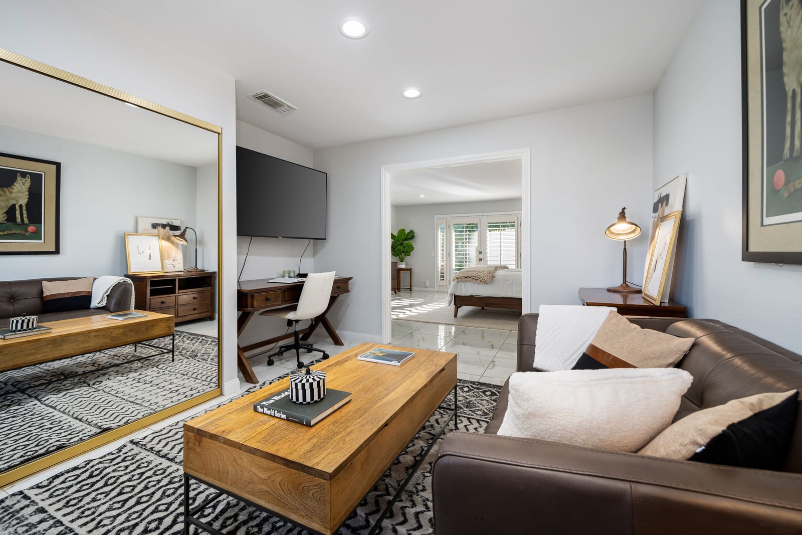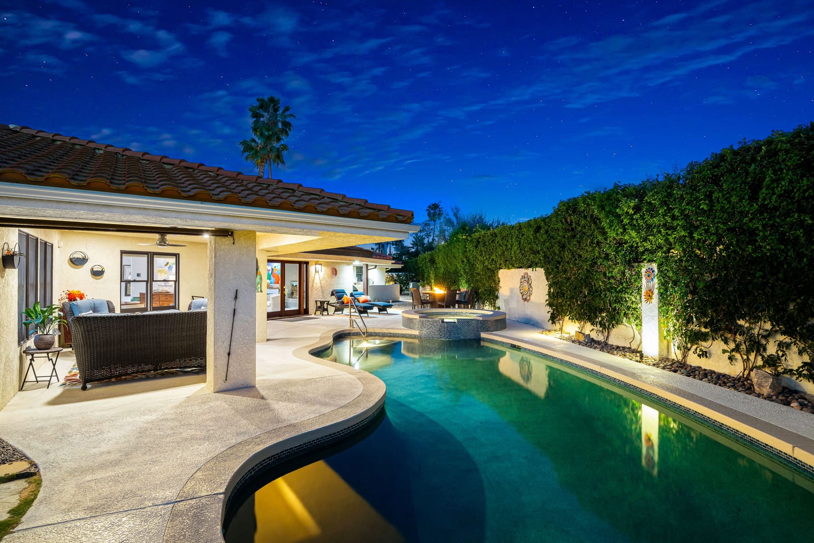 Tucked away at the end of a quiet cul- de- sac within the highly sought after gated community of The Cove in Indian Wells, sits this exceptionally remodeled and reimagined residence. Offering utmost privacy, refined comfort and effortless desert living. All with low HOA dues of $136/ month. Completely remodeled a few years ago, the home blends contemporary sophistication with timeless desert elegance. Spanning approximately 3604 sellers have left no stone unturned in the upgrades of this home Some of the many features include, new high efficiency HVAC unit, tankless water heater. Ceramic tile throughout , a gourmet chef's kitchen that is ideal for cooking and entertaining. and attached garage ...