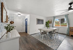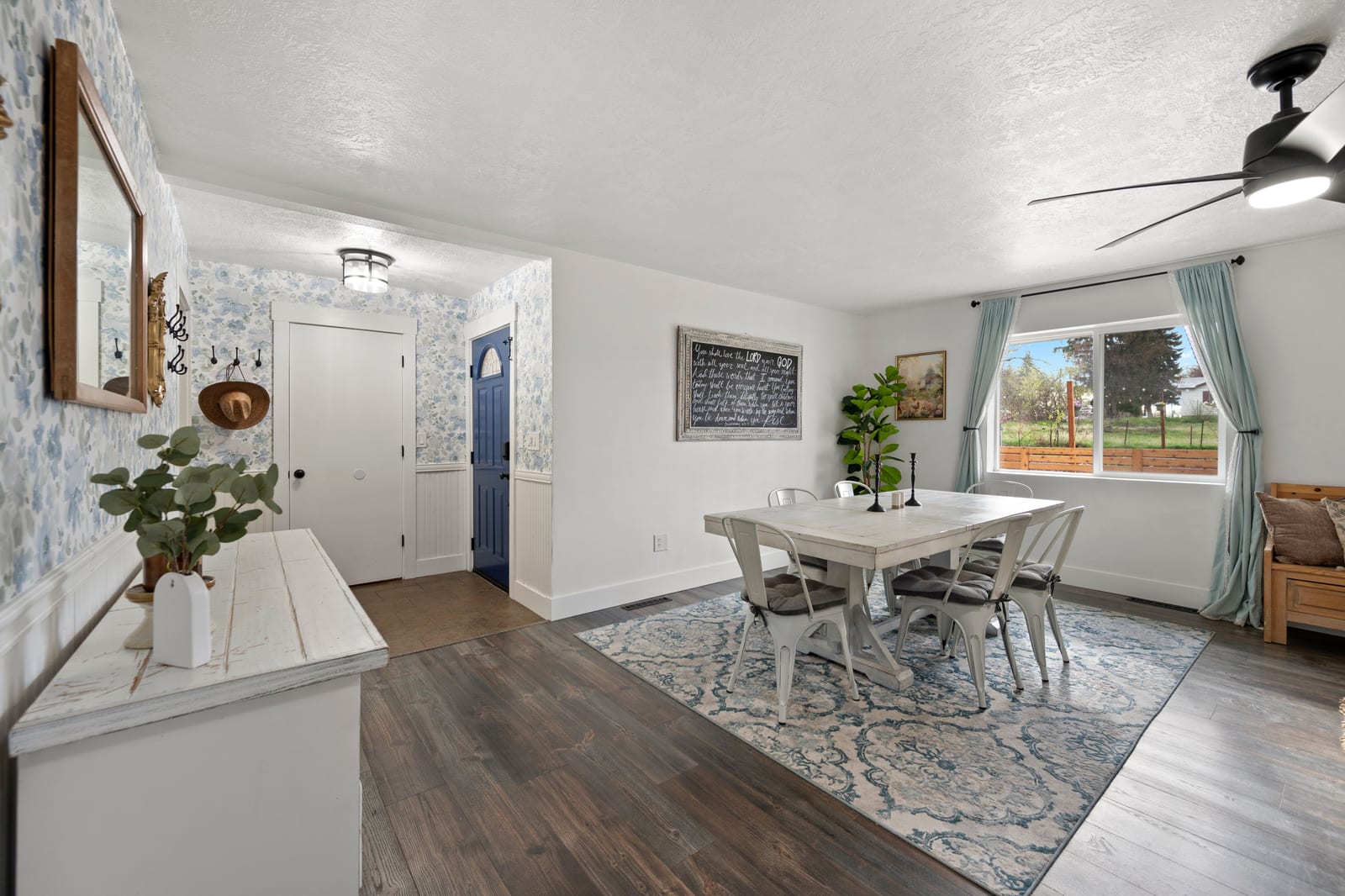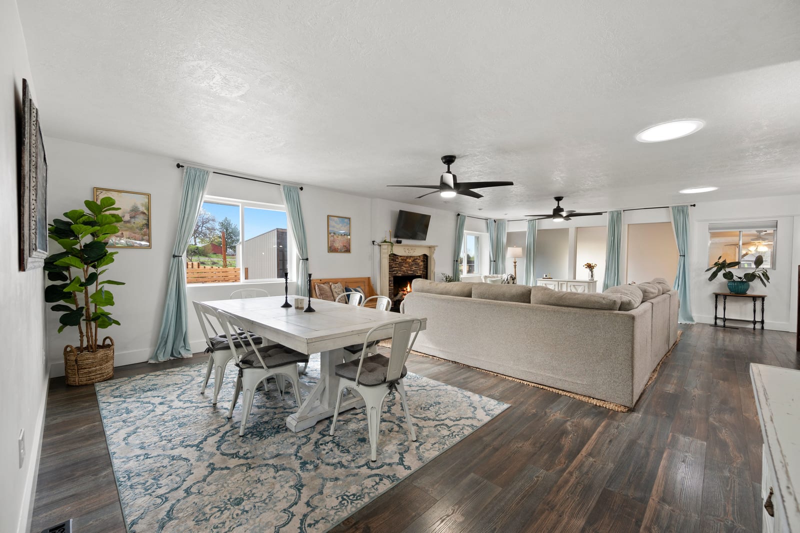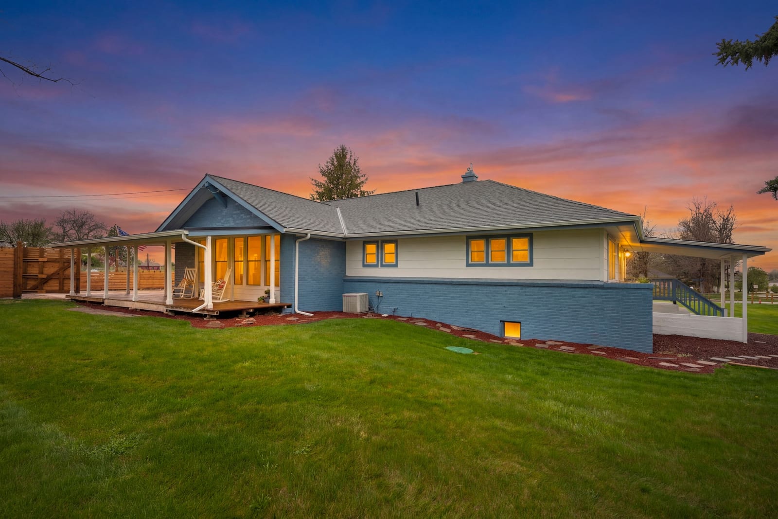 Own a piece of Idaho history—an iconic former schoolhouse reimagined into a fully updated home on 1.04 acres.With an integrated income producing lower level,the property offers expansive garden with utilities, and panoramic views of the Boise Front. Inside the spacious and open floor plan is floods with light.The living, kitchen and dining rooms blend seamlessly to allow everyday life or entertaining to unfold with ease. Just through the sunroom enjoy dining al fresco under the covered stone patio or gather around the custom stone firepit or enjoy the rolling lawns complete with full sprinklers. Inside the main level featuring updated bathrooms with walk-in showers and refreshed finishes. Downstairs an additional dwelling unit complete with full kitchen and bath offers exceptional versatility with its own private entrance—perfect for multi-generational living, dedicated guest quarters, extended family space, or the option to maintain as an income-producing rental. This home exudes “pride-of-ownership” with dedicated maintenance and improvements including new roof, siding, gutters, solar tube natural lights, electrical updates, kitchen updates, and full basement remodel - to name a few. This property captures rural ideals of Idaho- space, views, self-sufficiency, and freedom- while still being mins to shopping, dining, hospitals, and outdoor recreation & 15 miles to BOI.