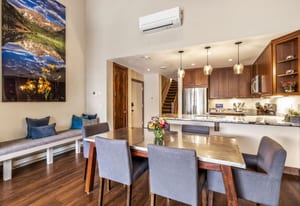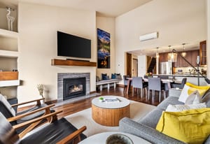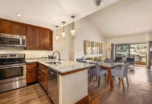 Residence 518 at The Seasons at Avon is a 3 bedroom, 3 bath south facing residence that has been completely reimagined from its original condition. It delivers a refined mountain home with high level finishes including air conditioning for year round comfort & fully furnished and curated with artwork. Located in a building that allows unrestricted short term rentals, this is a rare opportunity offering a compelling investment option while also serving as an exceptional residence for personal enjoyment. The open layout connects the living, dining, and kitchen areas, anchored by a gas fireplace and oriented toward Beaver Creek Mountain views. The private patio offers direct ski slope views and a grill for convenient outdoor cooking. Enjoy morning coffee, gatherings, and evening wine as the gondola glides up the mountain. Kitchen features an island with seating capacity for 4, honed granite countertops, custom cabinetry, and a dining area that seats 6. Bathrooms include honed granite, undermount sinks, European glass showers, and in floor radiant heat. The primary bath is spacious and spa inspired with an expansive walk in shower and jetted tub. The upper level primary suite includes 3 closets, a spacious bedroom, and a well appointed bathroom. The Seasons at Avon has on site ski storage, providing convenient gear access and an easy transition to the Riverfront Express Gondola. Residents enjoy access to the Westin Riverfront Resort & Spa nearby with memberships and punch pass options, as well as the Avon Recreation Center with pools, slides, climbing wall, and fitness facilities. Located in the heart of Avon with easy access to dining, shopping, Nottingham Park and Avon Lake, and a short walk to the Riverfront and gondola. The Avon shuttle stops just outside, with a nearby shuttle to Beaver Creek Village for dining, après, and evening enjoyment. The Seasons also offers two guaranteed unassigned parking spaces included, plus access to a separate guest parking garage.