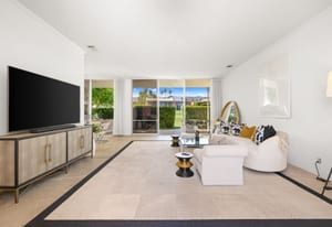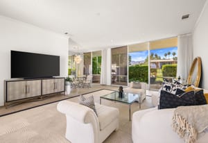 Once inside via the iconic Marrakesh double Pullman entry doors, you will find this light-filled two-bedroom, two-bathroom, 1,808 sq. ft. B Plan residence ready for your personal vision. Soaring 10’ ceilings and abundant natural light create an inviting foundation for reimagining.
