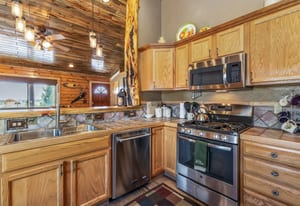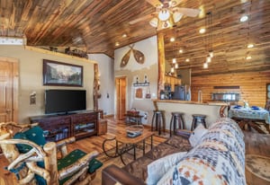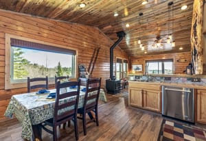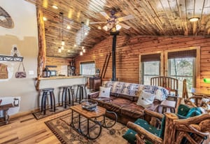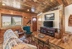 Tucked among aspens on a 1-acre lot, this lovingly maintained, meticulously crafted mountain log cabin offers the perfect blend of rustic charm + modern comfort. Cool mountain air greets you on arrival, as expansive front & back decks set the stage for sweeping mountain / meadow views, morning coffee in the quiet of nature, and unforgettable golden-hour evenings. Inside, the open floor plan is warm and inviting, highlighted by stunning beetle-kill pine, tongue-and-groove woodwork throughout. The updated kitchen and bath bring a fresh, functional touch, with additional counter seating perfect for casual dining or gathering with friends and family. A cozy wood-burning stove offers the perfect mountain ambiance. The thoughtfully designed layout includes a laundry/mudroom with direct access to the back deck—ideal after a day of outdoor adventure nearby. The oversized, heated 2-car garage offers ample space for vehicles and gear, while 2 additional, powered outbuildings provide flexibility for storage, hobbies, or creative use. This home has been enjoyed primarily by family and only occasional rented, and it shows—pride of ownership is evident throughout. Furnished and truly move-in ready, it’s just waiting for its next chapter.