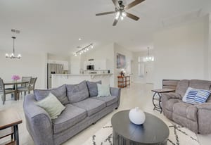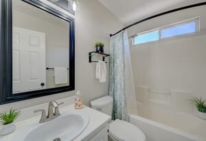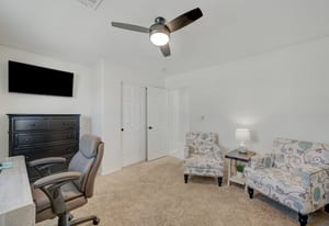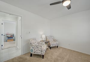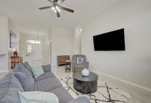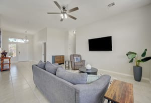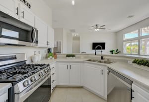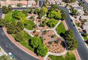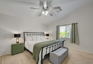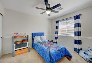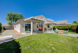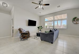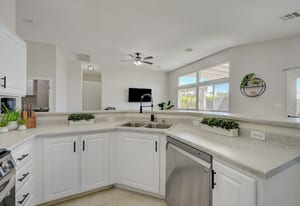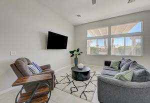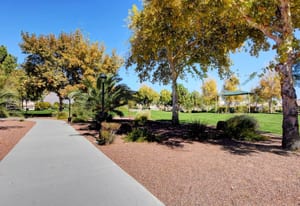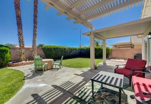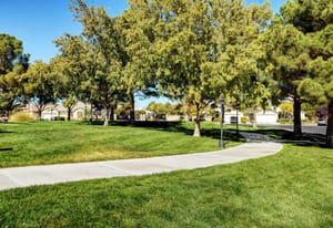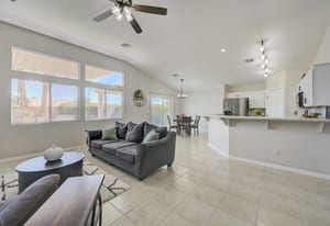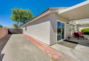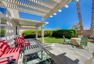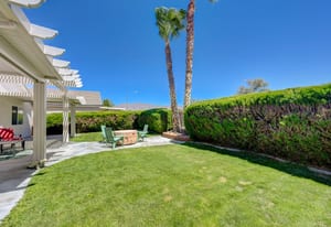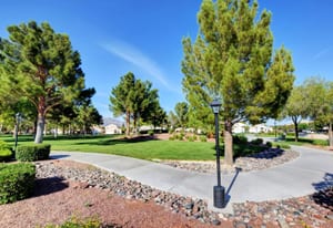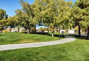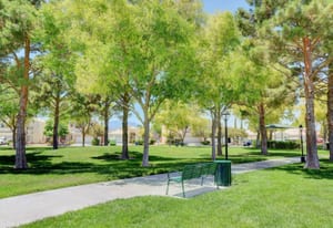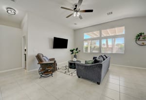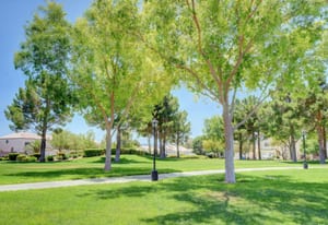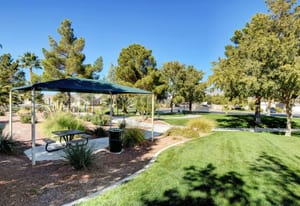 1-story in gated SD with rare RV parking featuring a 10' wide gate and 220V EV charger. Enjoy a private backyard retreat with lush real grass, striking palm trees, a full-length extended patio cover, and an upgraded sliding glass door with built-in blinds—perfect for entertaining family and friends or relaxing outdoors in style. Inside, vaulted ceilings and an open-concept layout create a bright, airy feel. The kitchen boasts 3-year-new stainless steel LG smart appliances, new sink and faucet, and track lighting. All solid surface flooring, fresh paint, updated lighting, a new ceiling fan in the great room, and all new toilets, bathroom hardware, and mirrors complete this move-in ready home, while a 5-year-new HVAC system ensures comfort and efficiency year-round. Conveniently located near shopping, dining and freeway access, this home combines modern upgrades with a versatile, functional layout ideal for families, outdoor enthusiasts, and anyone seeking a turnkey Las Vegas residence.