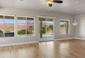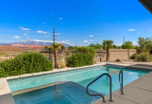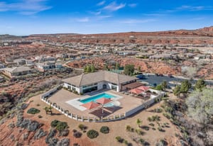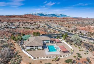 Perched on a quiet street in the outskirts of the city of Washington, this stunning residence offers a front-row seat to Utah’s legendary red mountain vistas and views of Pine Valley. Designed for those who value both luxury and utility, the property features extra parking which is perfect for guests or adventure gear. This incredible home features 4 bedrooms (including an attached casita with separate an entrance), 3.5 bathrooms, tandem 3 car garage, 2,378 SqFt, built in 2015, and 0.29 acres. Some of the best features of the home are absolutely magnificent mountain views, custom built pool with spa, ceiling built-in speaker system, fireplace, outdoor kitchen, granite countertops, ceiling fans in every room, large open concept living room, large laundry room with utility sink, tile flooring, large windows, motorized blinds and plantation shutters, and 19 solar panel system. For guests or a private home office, the attached casita provides flexibility with its own entrance. The backyard is a private oasis designed for the ultimate entertainer. Take a dip in the sparkling pool that blends into the mountain horizon, host dinner from the outdoor kitchen, or gather around the fire pit to watch the stars emerge over the peaks.