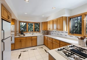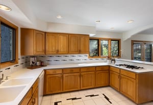 Flat lot with circular drive, front and back decks, and a patio wired for a hot tub. Move-in ready with recent partial interior paint and a new furnace. Inside features solid oak floors, vaulted ceilings, sunken living room, oversized kitchen, and multiple gathering spaces. Upper-level primary suite plus two bedrooms and a second family room downstairs with gas woodstove and patio access. Large tandem 2-car garage with workbench and storage. Bonus: vintage Solitude Squaw Valley Ski Resort chairlift swing included.Â