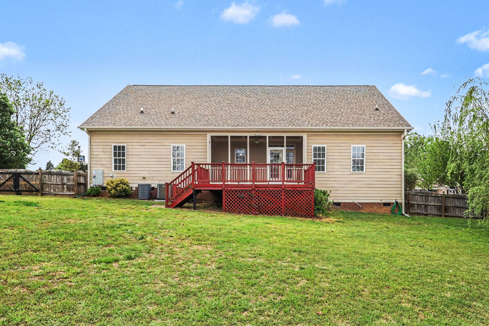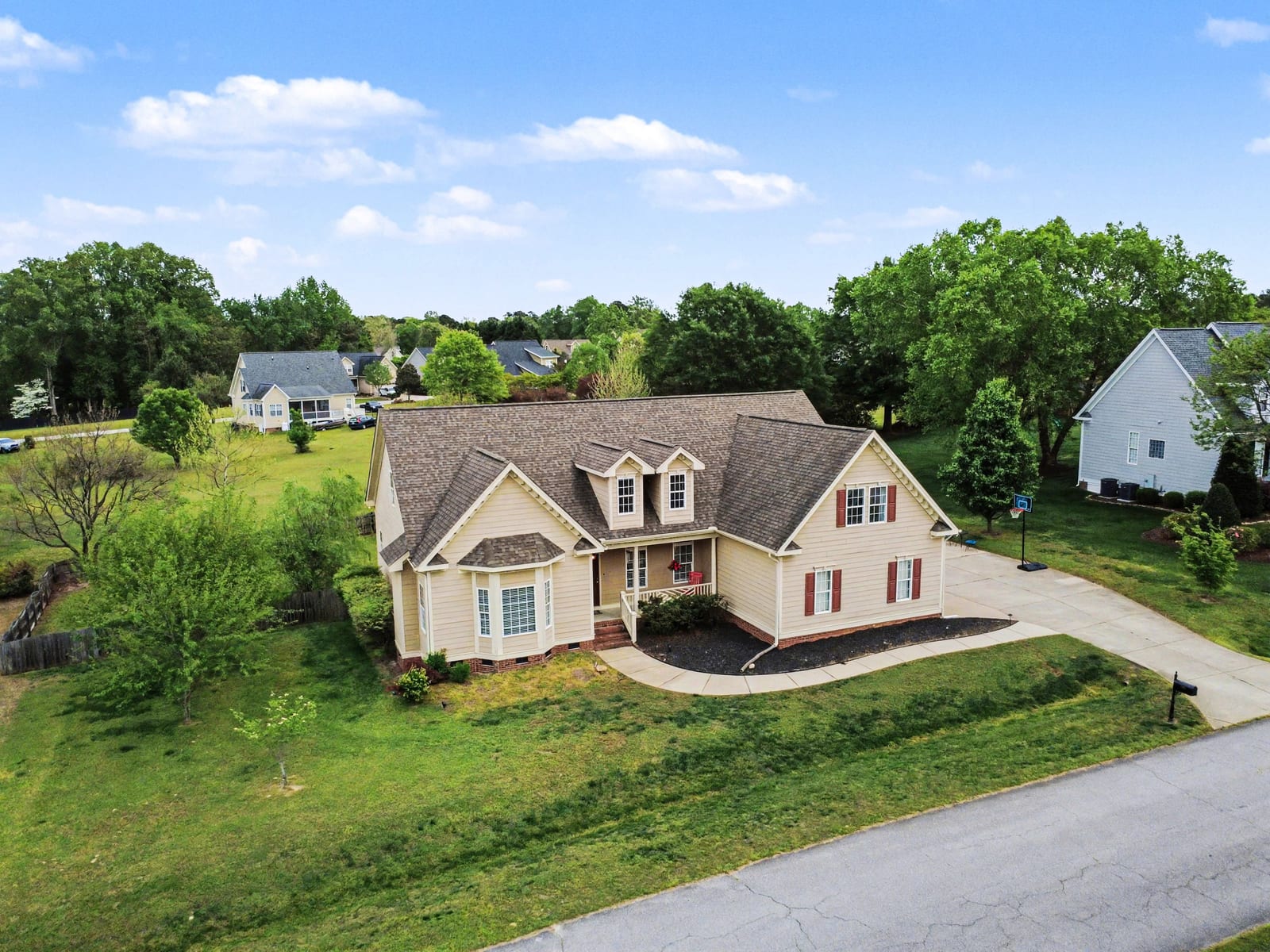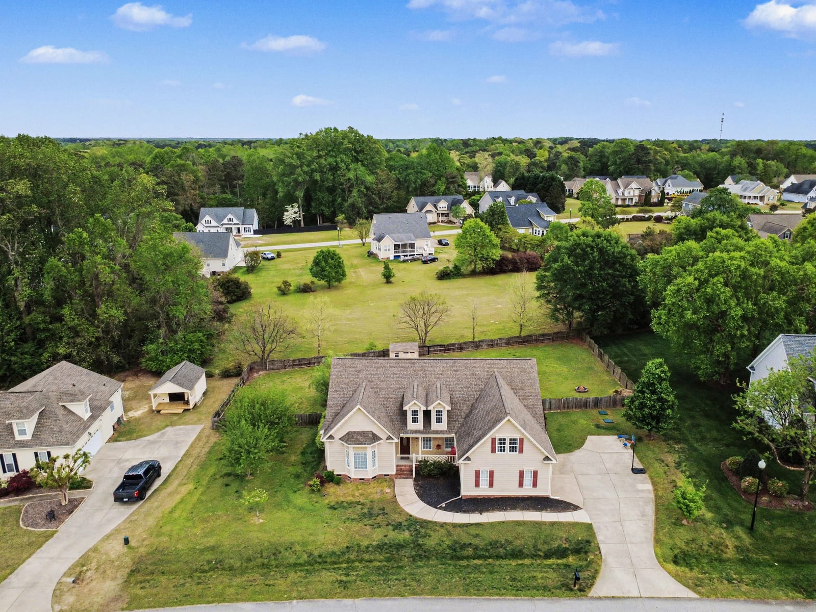 Welcome to 7209 Lace Leaf Way - a charming 3 bed/2 bath home within the Elliott Landing community in Fuquay Varina. This traditional 1.5 story property offers hardwood floors and beautiful millwork which set the tone from the moment you walk in. The family room is a natural gathering spot - a bay window floods the space with light and a fireplace anchors the room with warmth. The eat-in kitchen keeps everyday living easy, while the formal dining room gives you the space to host for life's special occasions. The split bedroom layout puts the primary suite and guest suite on opposite ends of the home - a small detail that results in a thoughtful floor plan. Upstairs, a bonus room adds flexibility for a home office, playroom, gym or media space, and the expansive 1375 sq ft walk-in attic means storage is never an afterthought. Outside, this home continues to shine: a covered front porch welcomes you home, while the screened back porch and deck overlook a flat, fenced half-acre backyard - complete with a small fire pit and storage shed. Community amenities include a fishing pond, playground, and a pagoda with picnic tables and grills. Minutes away from multiple grocery stores, the brand new Target, and downtown Fuquay Varina, this location is also conveniently located to I-540 putting the rest of the Triangle well within reach.