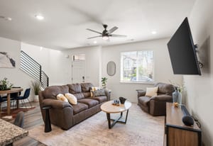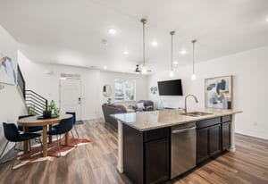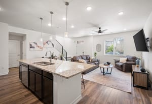Welcome to this beautifully designed townhome featuring an open and inviting floor plan perfect for modern living. The kitchen shines with granite countertops, stainless steel appliances, rich dark cabinetry, and a cozy eating nook—ideal for both everyday meals and entertaining. The bright and spacious family room is filled with natural light, creating a warm and welcoming atmosphere.